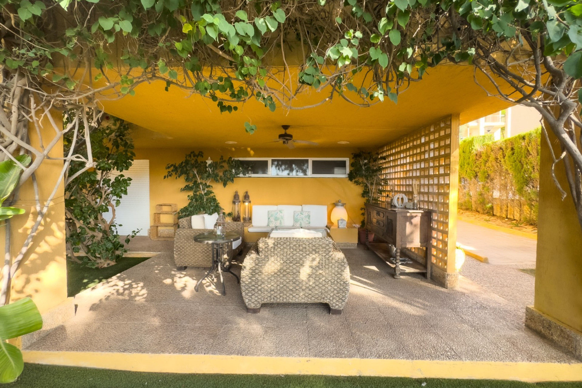 La propiedad está localizada en un exlusivo enclave de Santa Pola del Este, rodeado de arbolado, a escasos metros del paseo marítimo y de la playa del Carlotti-Varadero.