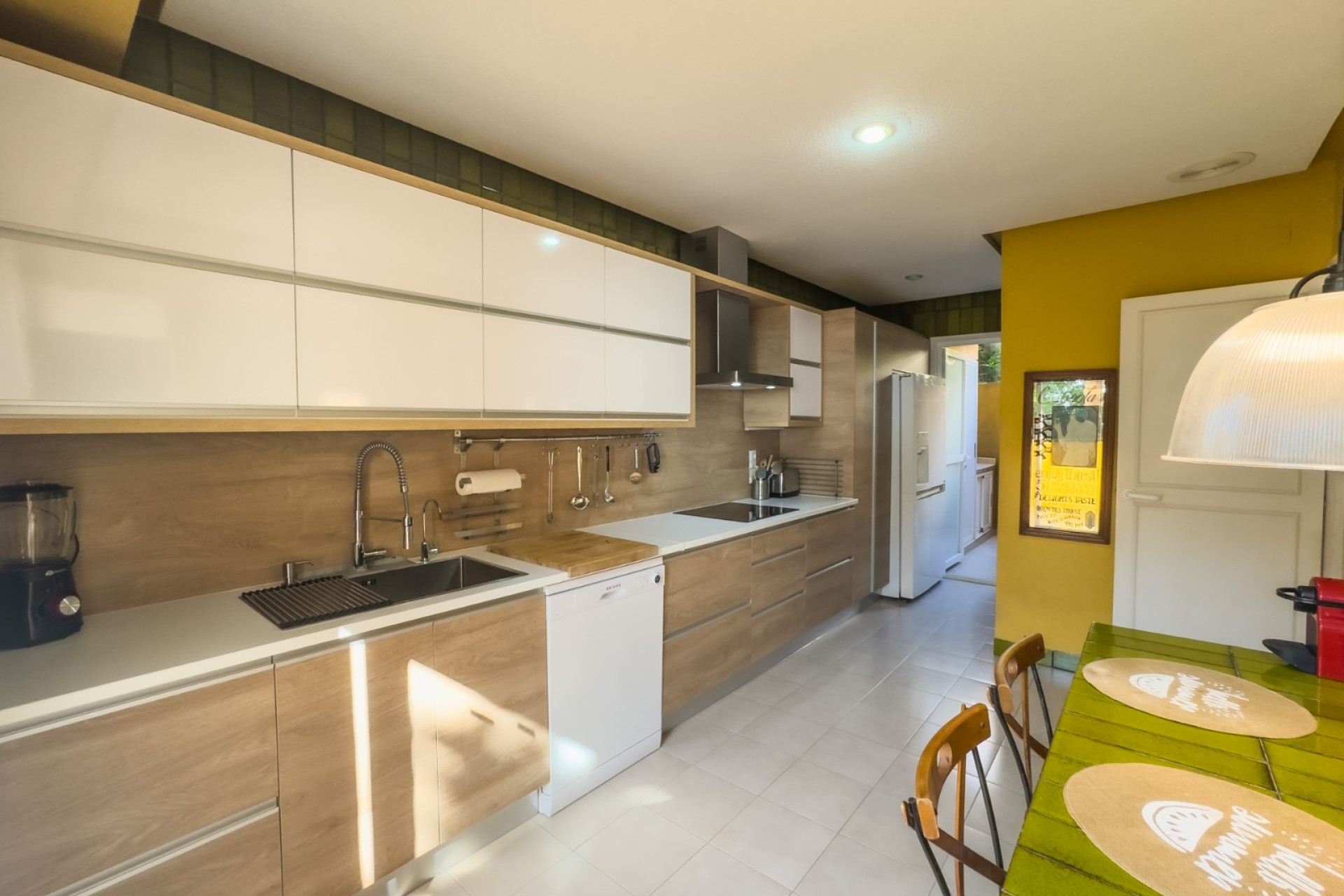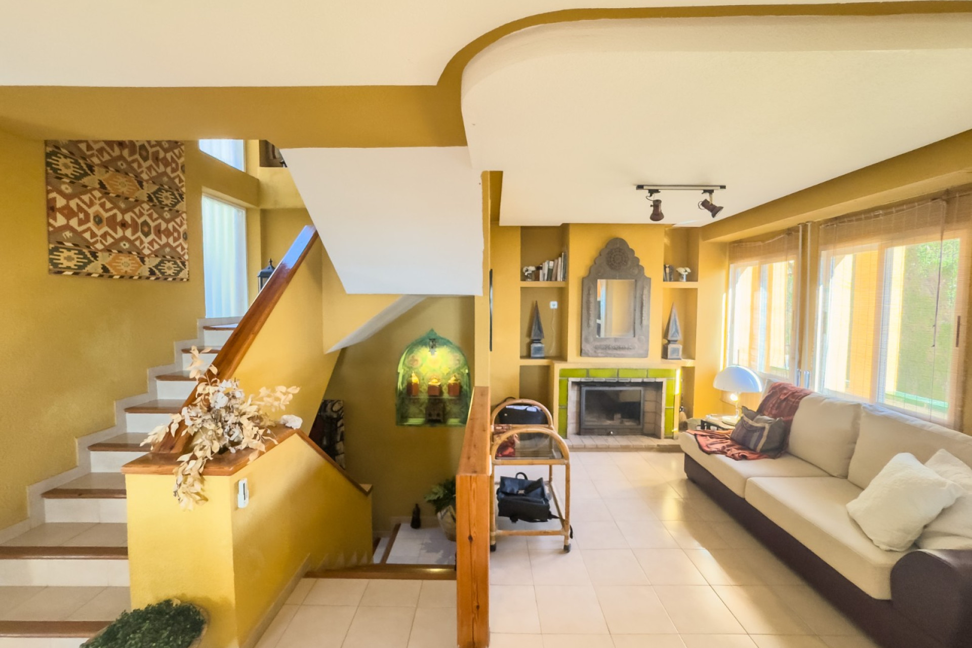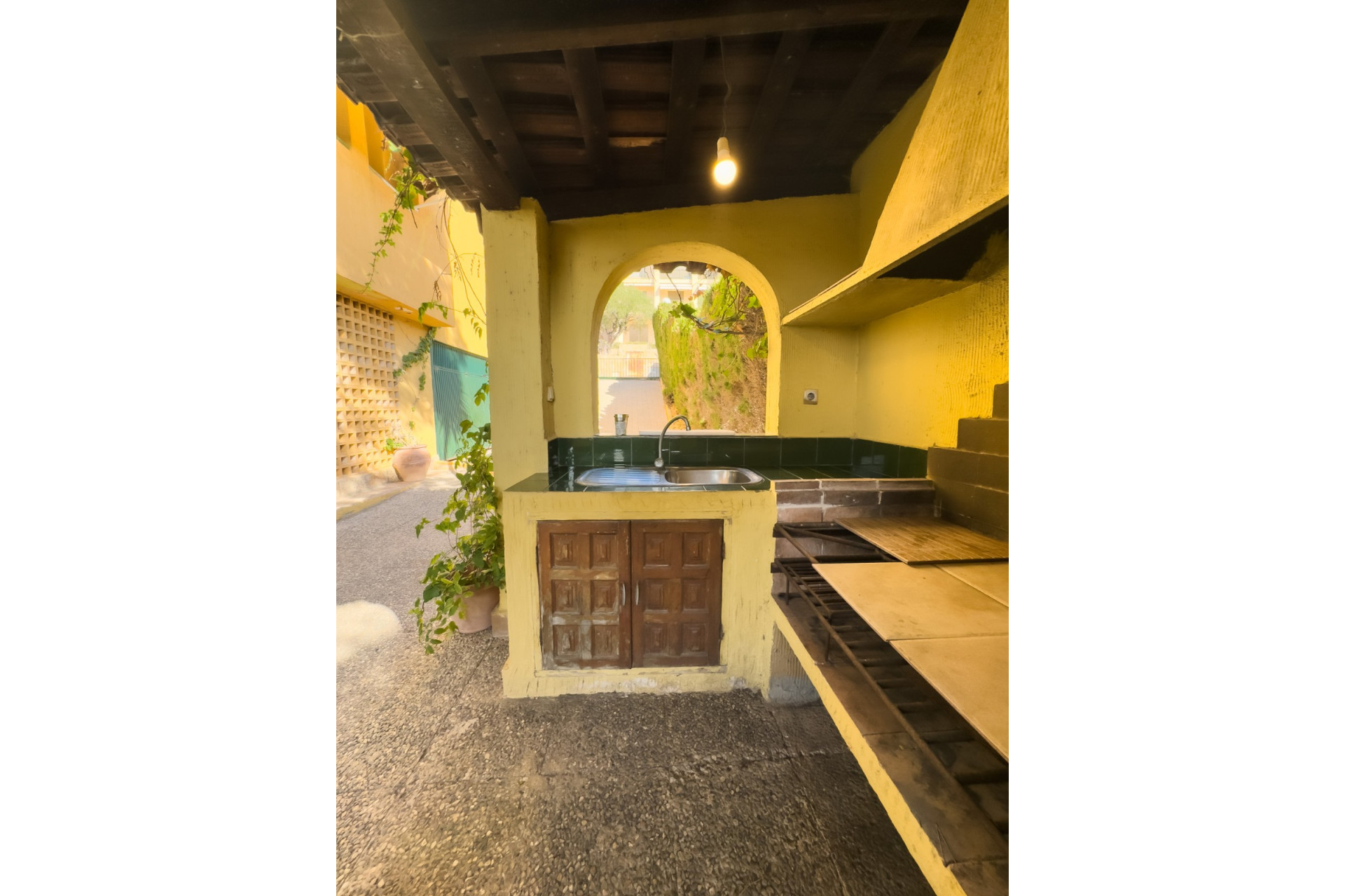 La propiedad cuenta con tres plantas, en planta primera tiene un amplio salón comedor, cocina independiente toda equipada, galería, aseo y zona de chimenea de leña. La terraza de esta planta tiene otra bonita estancia de sofás - zona de estar.