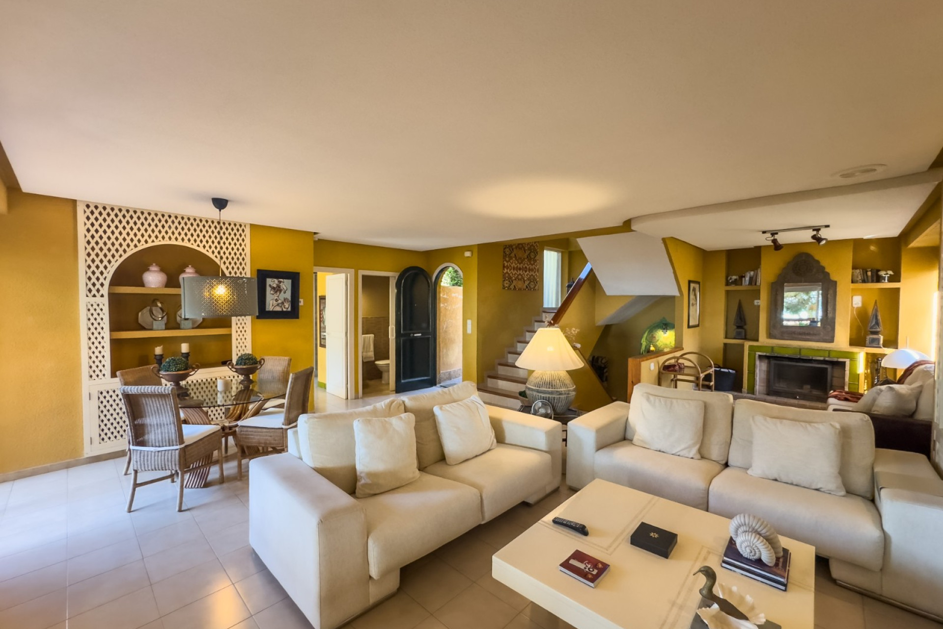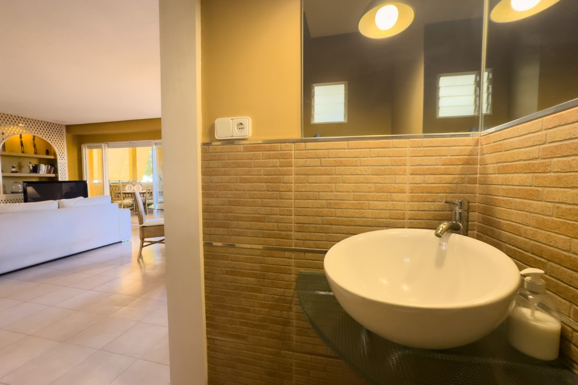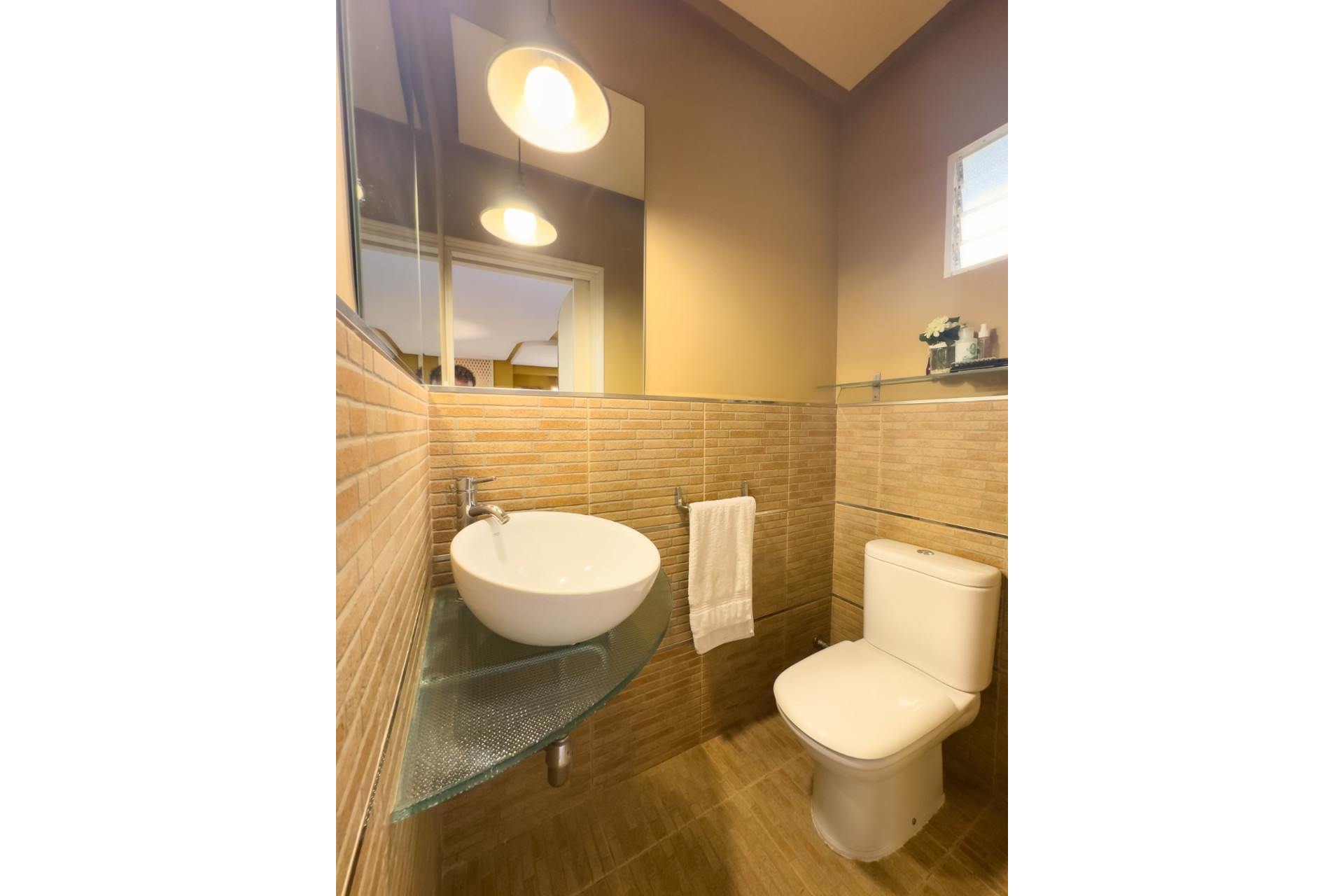 La propiedad cuenta con tres plantas, en planta primera tiene un amplio salón comedor, cocina independiente toda equipada, galería, aseo y zona de chimenea de leña. La terraza de esta planta tiene otra bonita estancia de sofás - zona de estar.