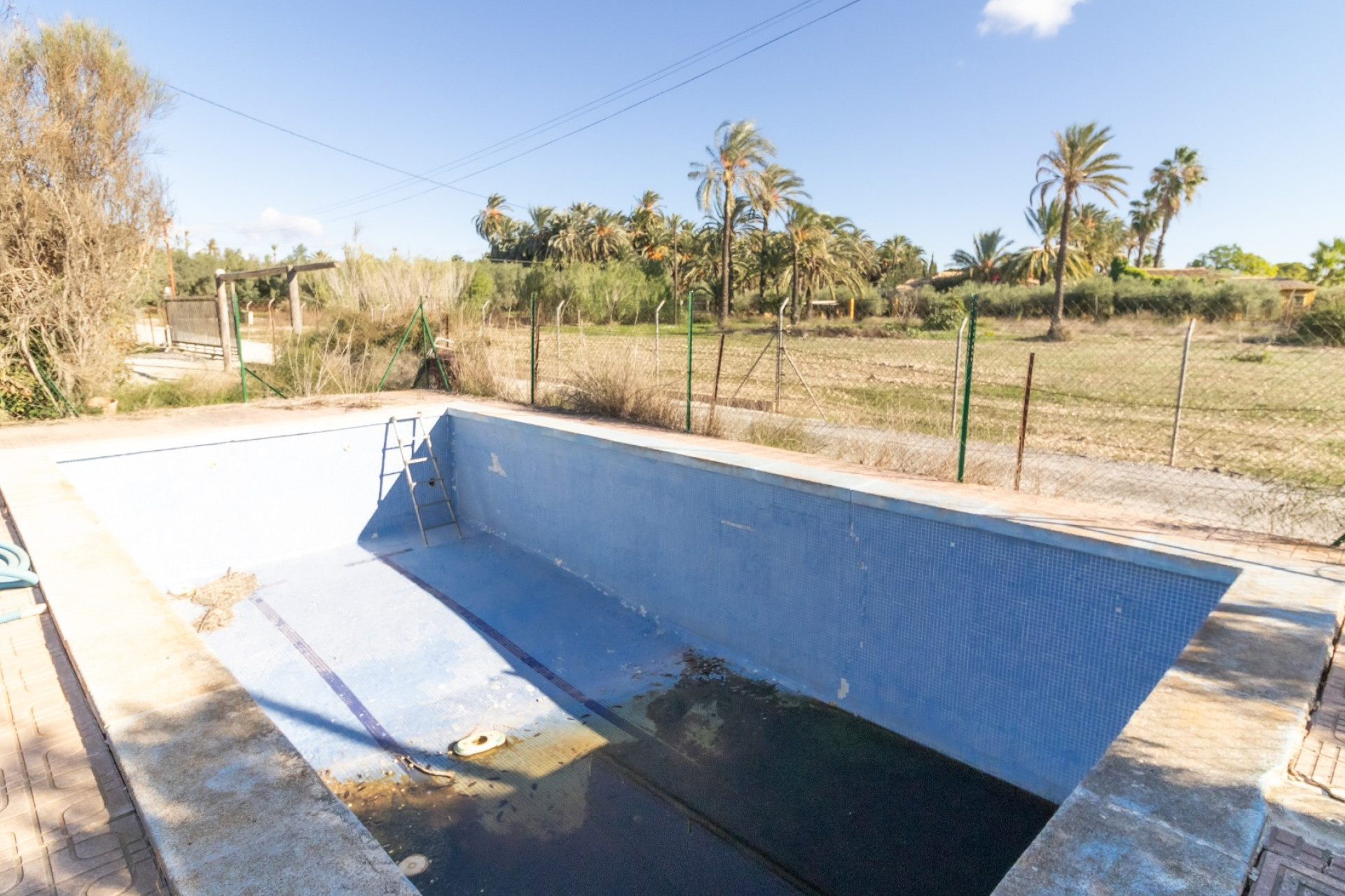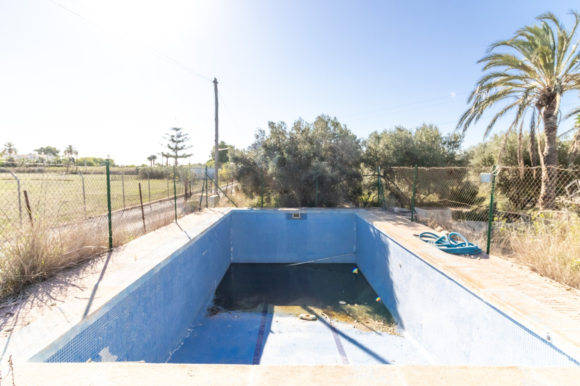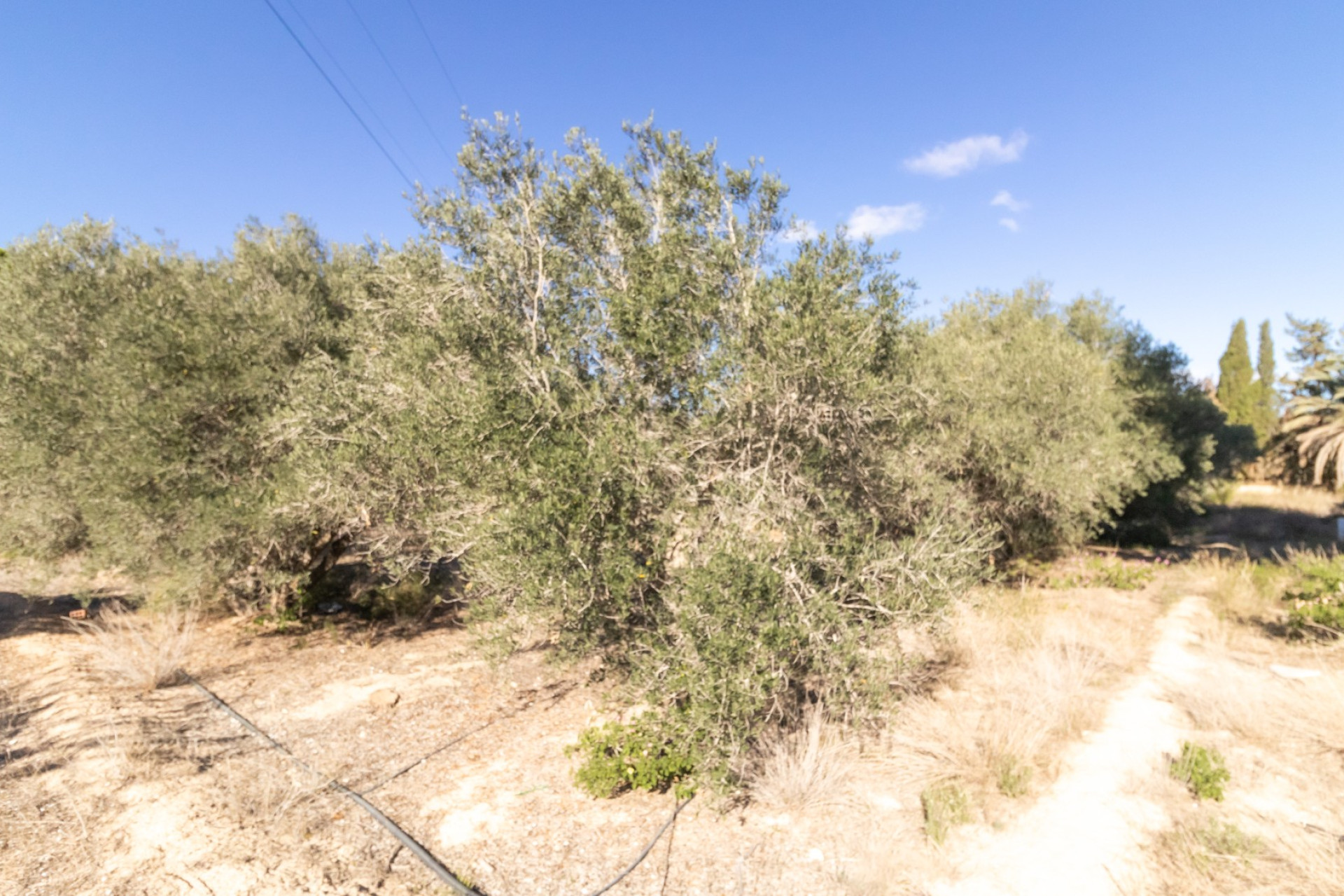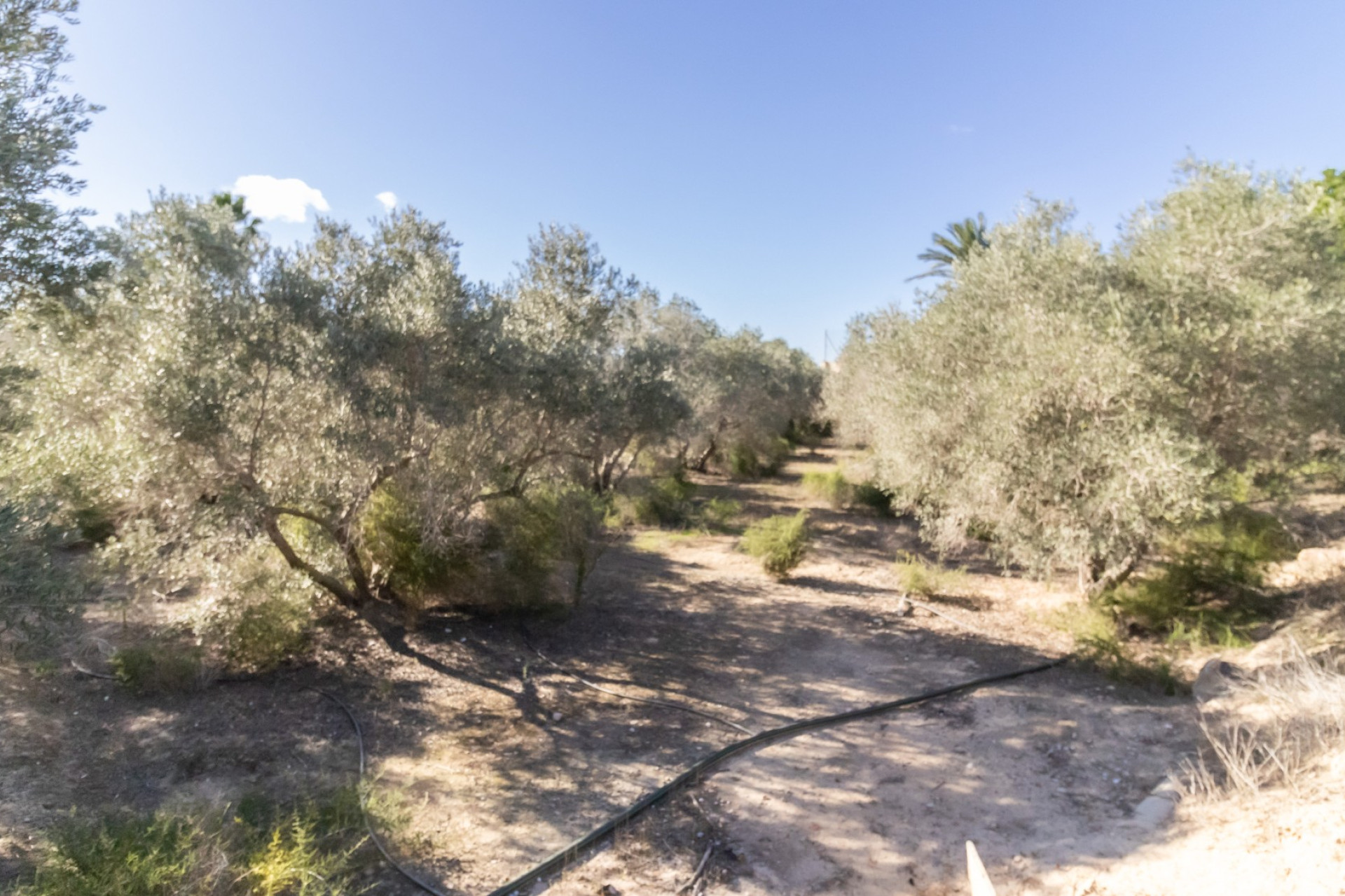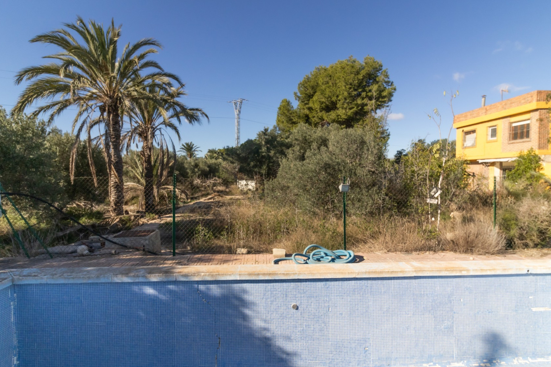 El Chalet tiene una orientación medio día, su parcela es de 8.221 m2 toda vallada, la mayoría con plantación de unos 200 olivos y la piscina de 25 metros cuadrados.