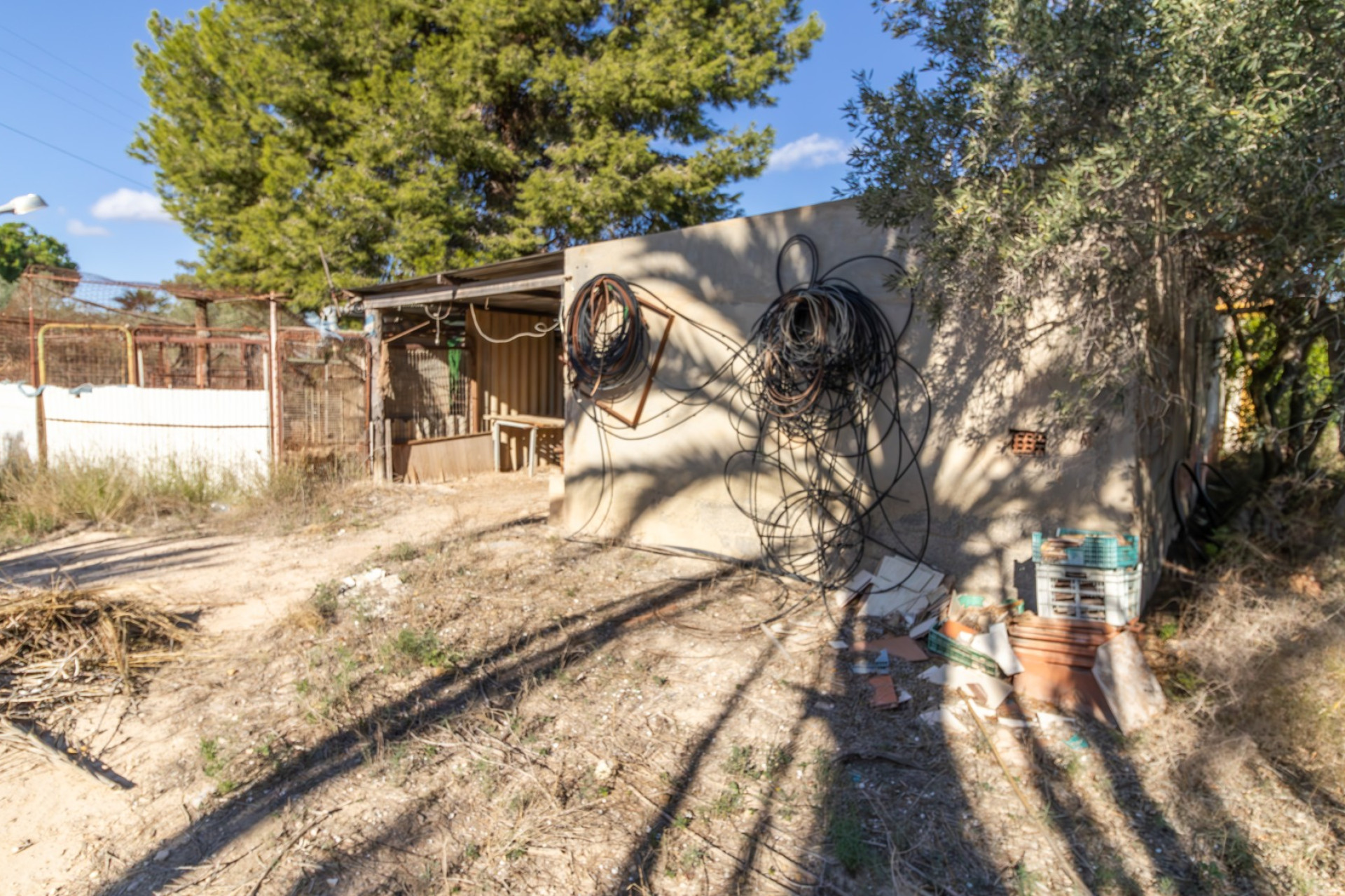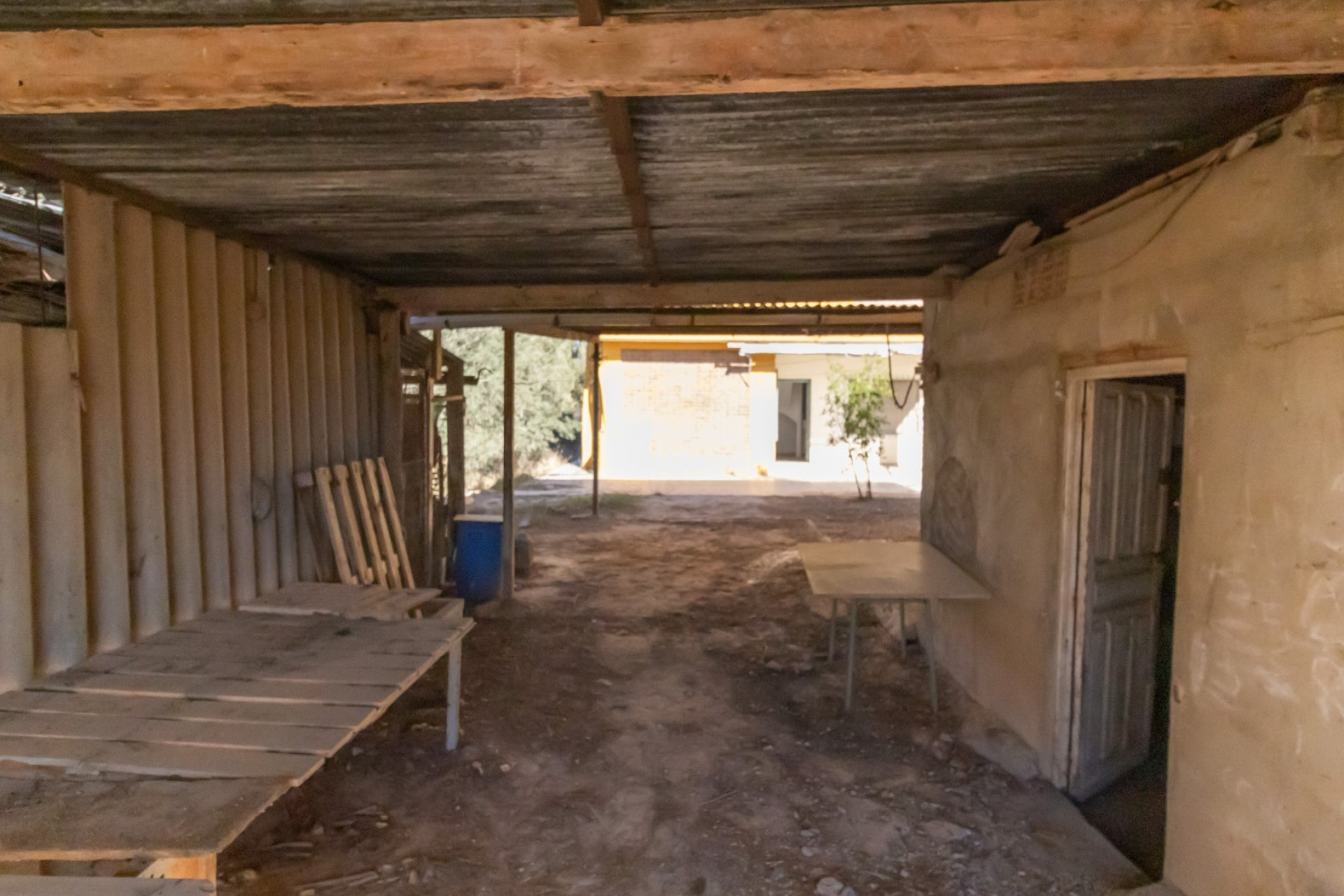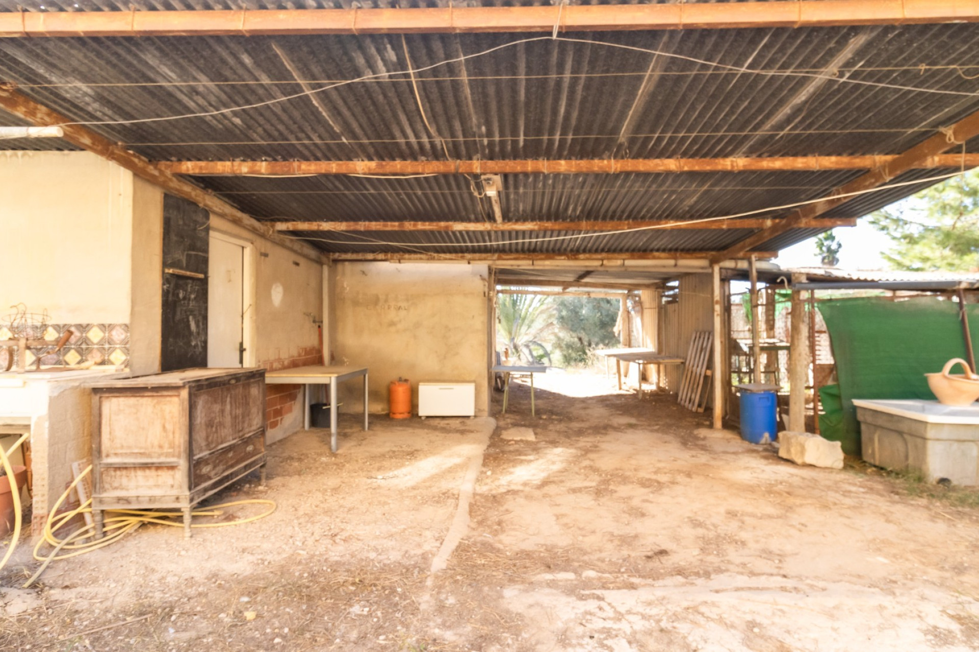 En su zona exterior y frente al porche techado, hay 55 metros construidos de almacén, baño y gallinero.