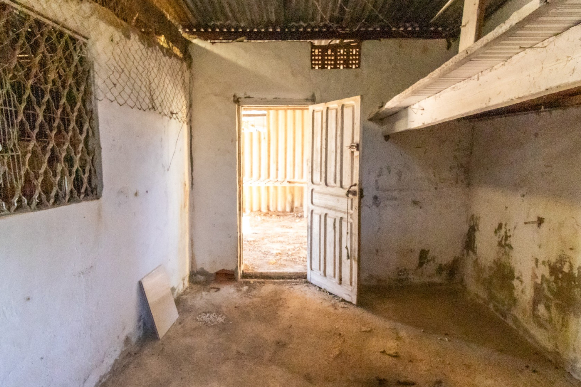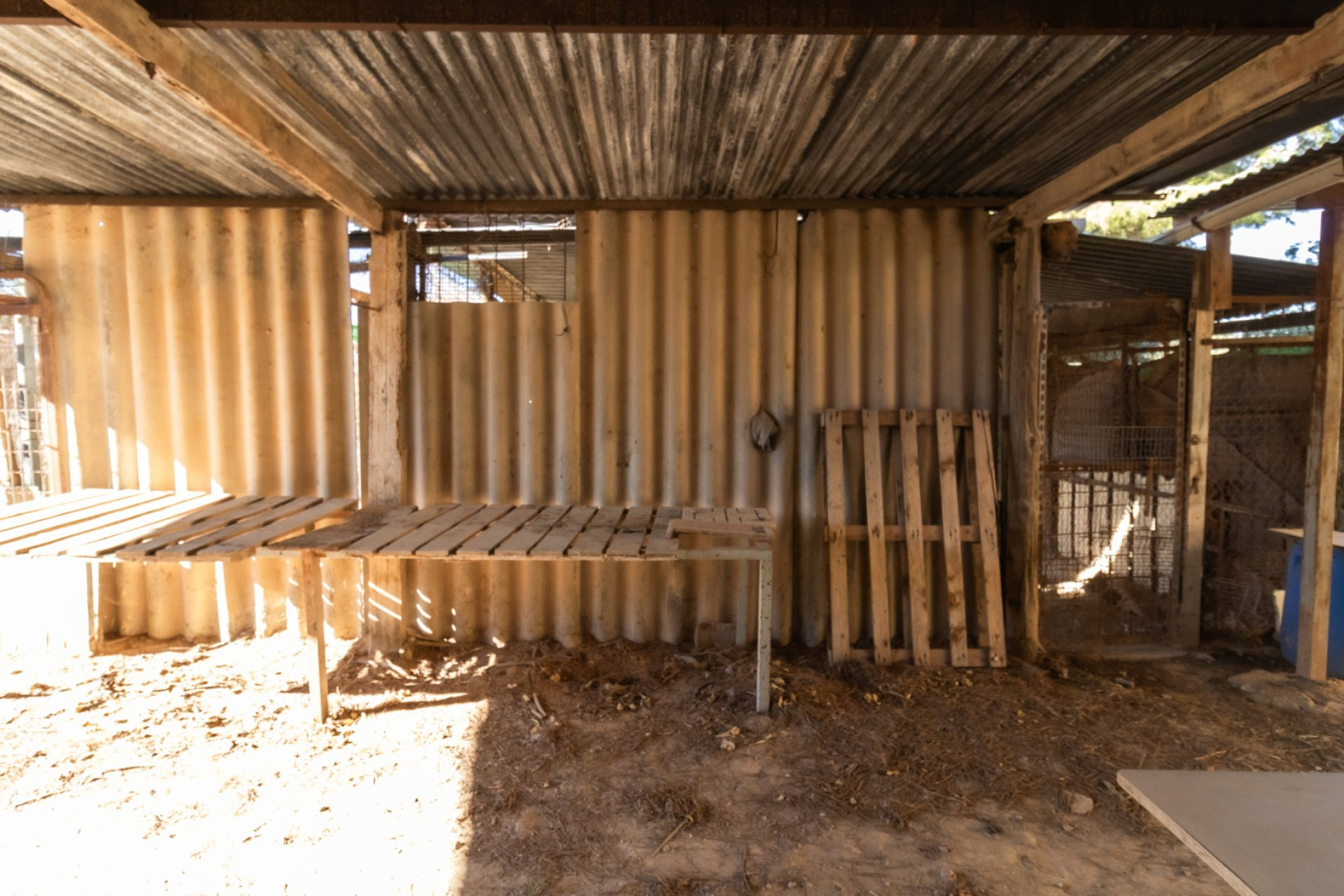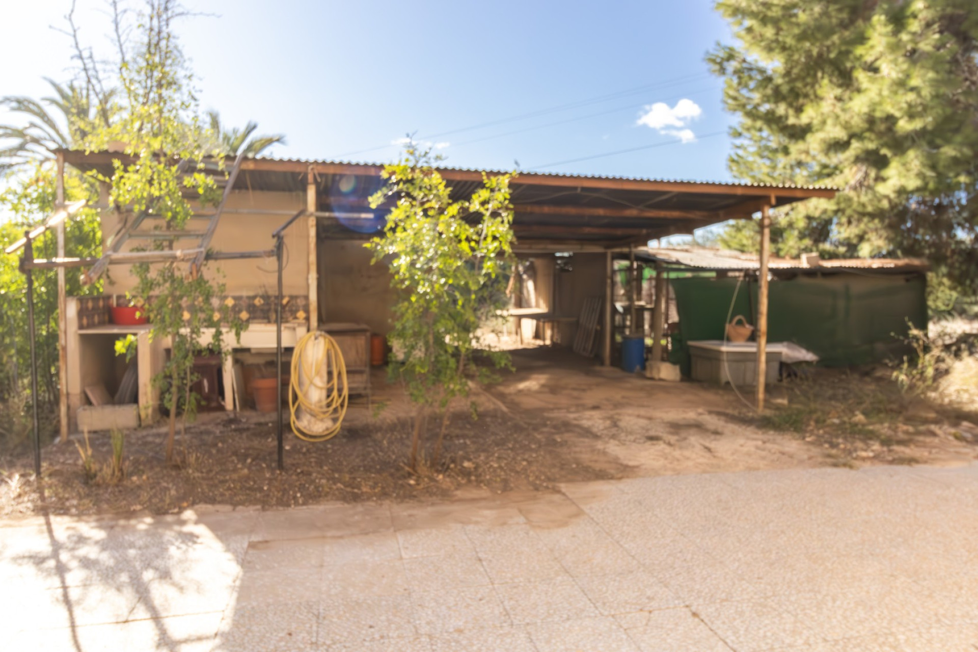 En su zona exterior y frente al porche techado, hay 55 metros construidos de almacén, baño y gallinero.