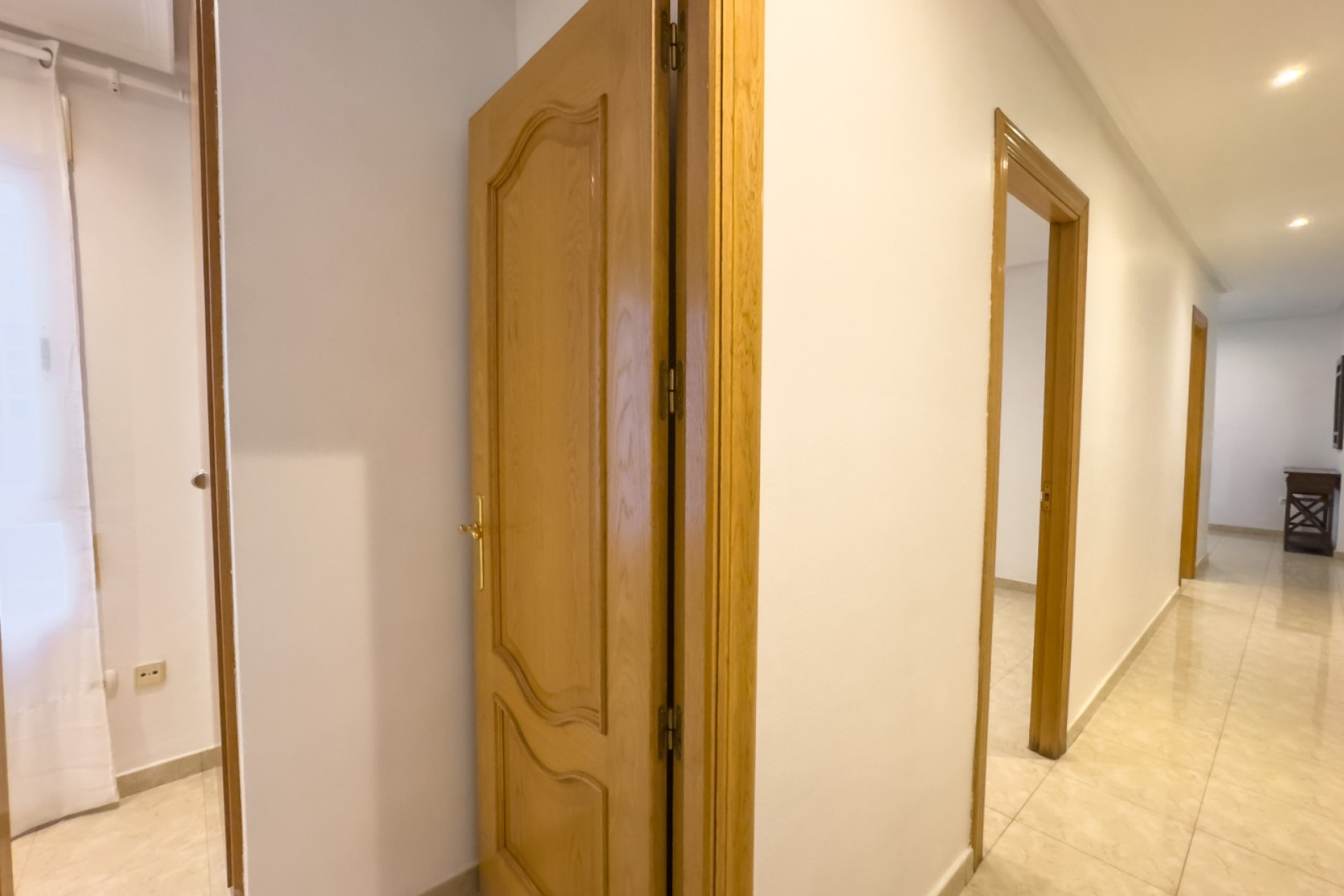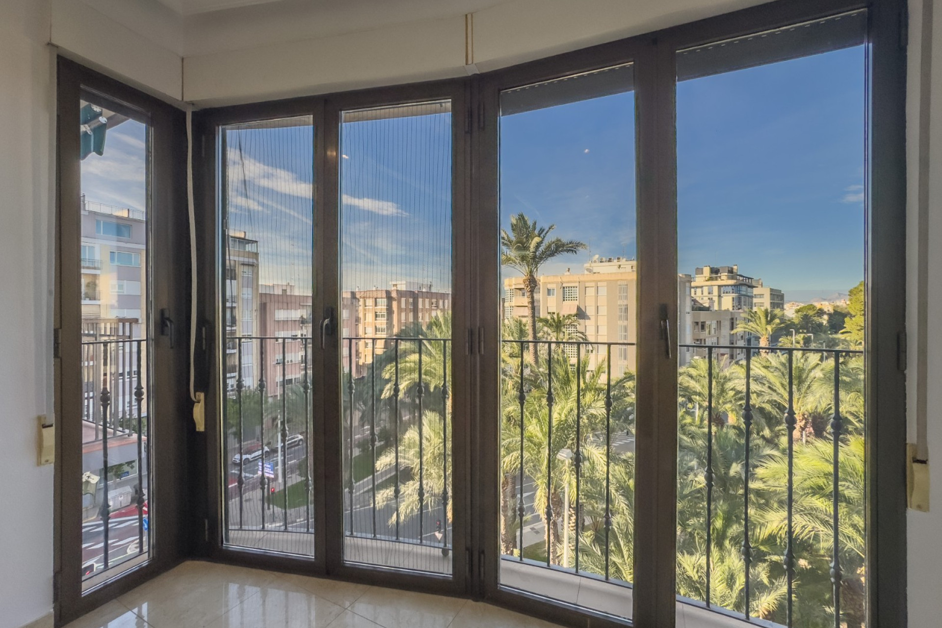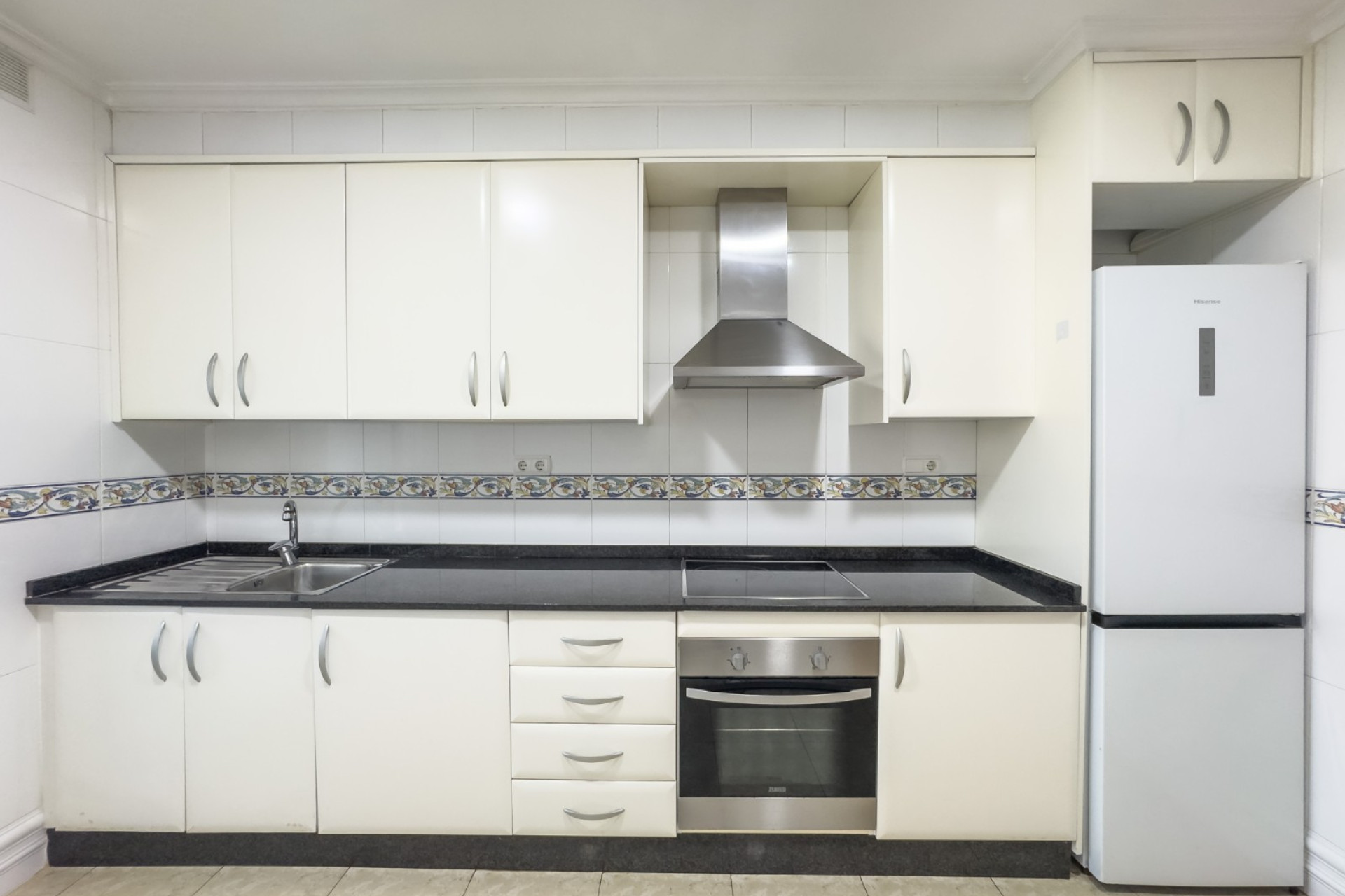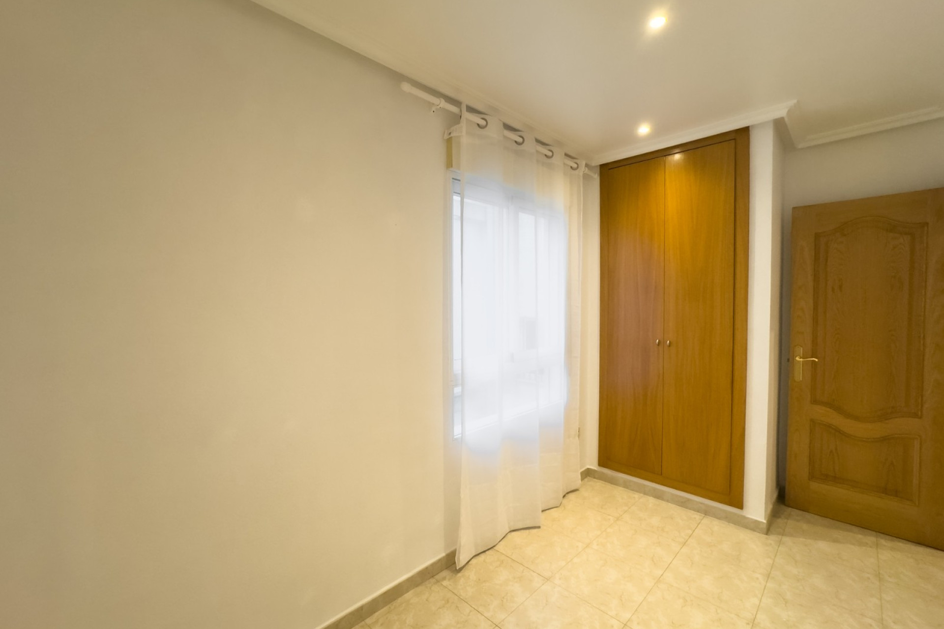 Amplio piso sin amueblar en la Plaza de Benidorm de Elche, cocina y galería equipada con todos los electrodomésticos, la finca cuenta con ascensor, amplias vistas desde el salon y galería-cocina, habitación principal con baño en suite, baño en pasillo, tres amplios armarios de obra en las tres habitaciones.