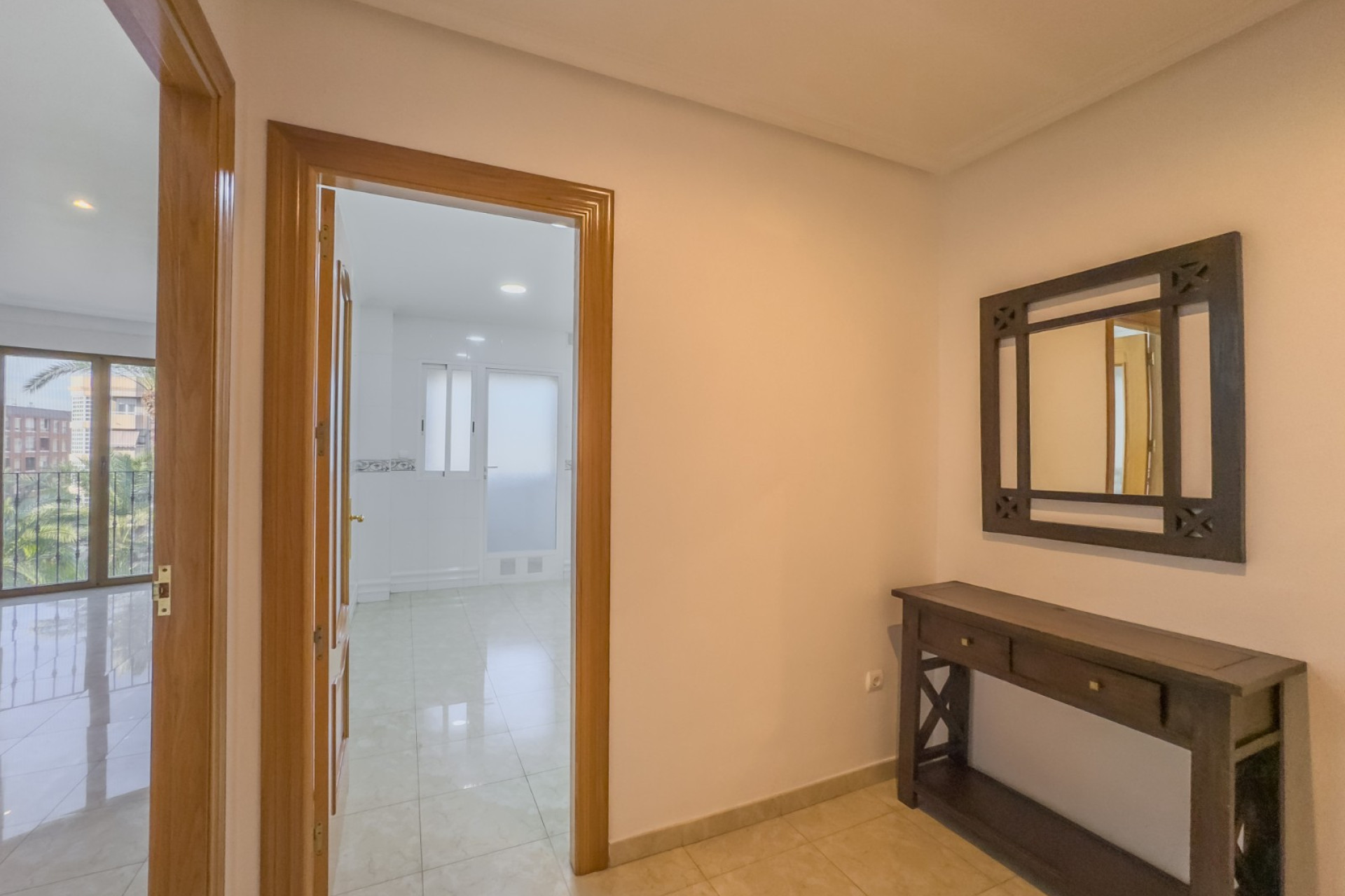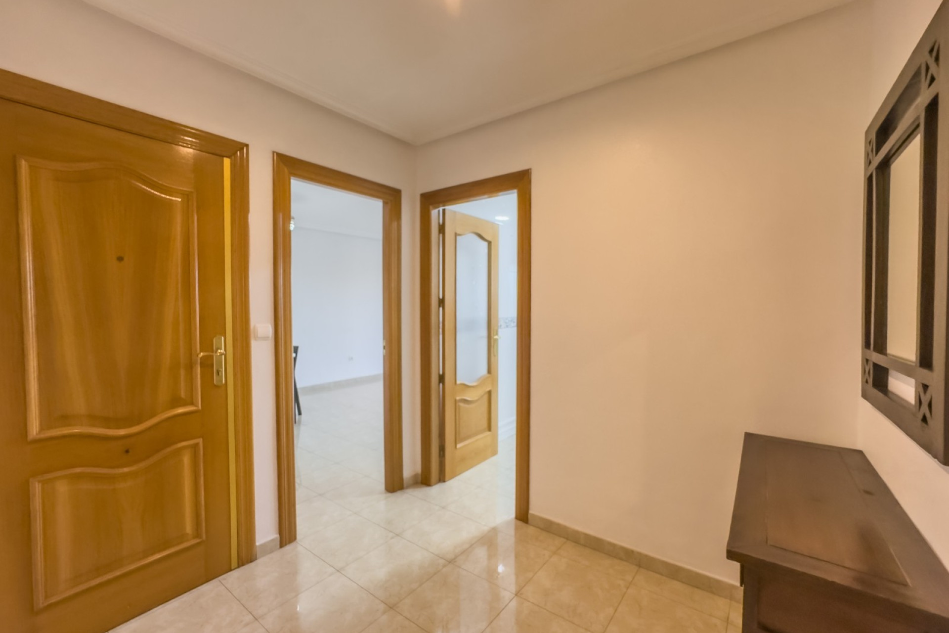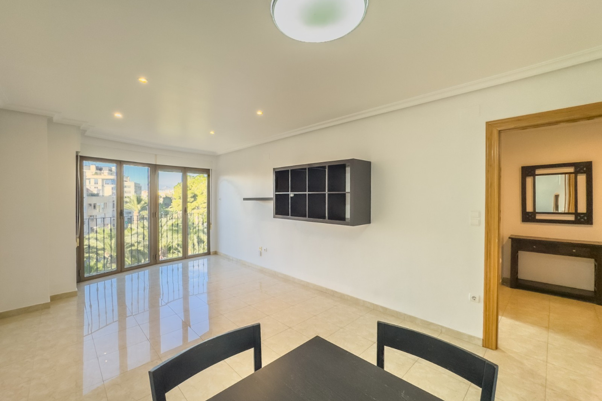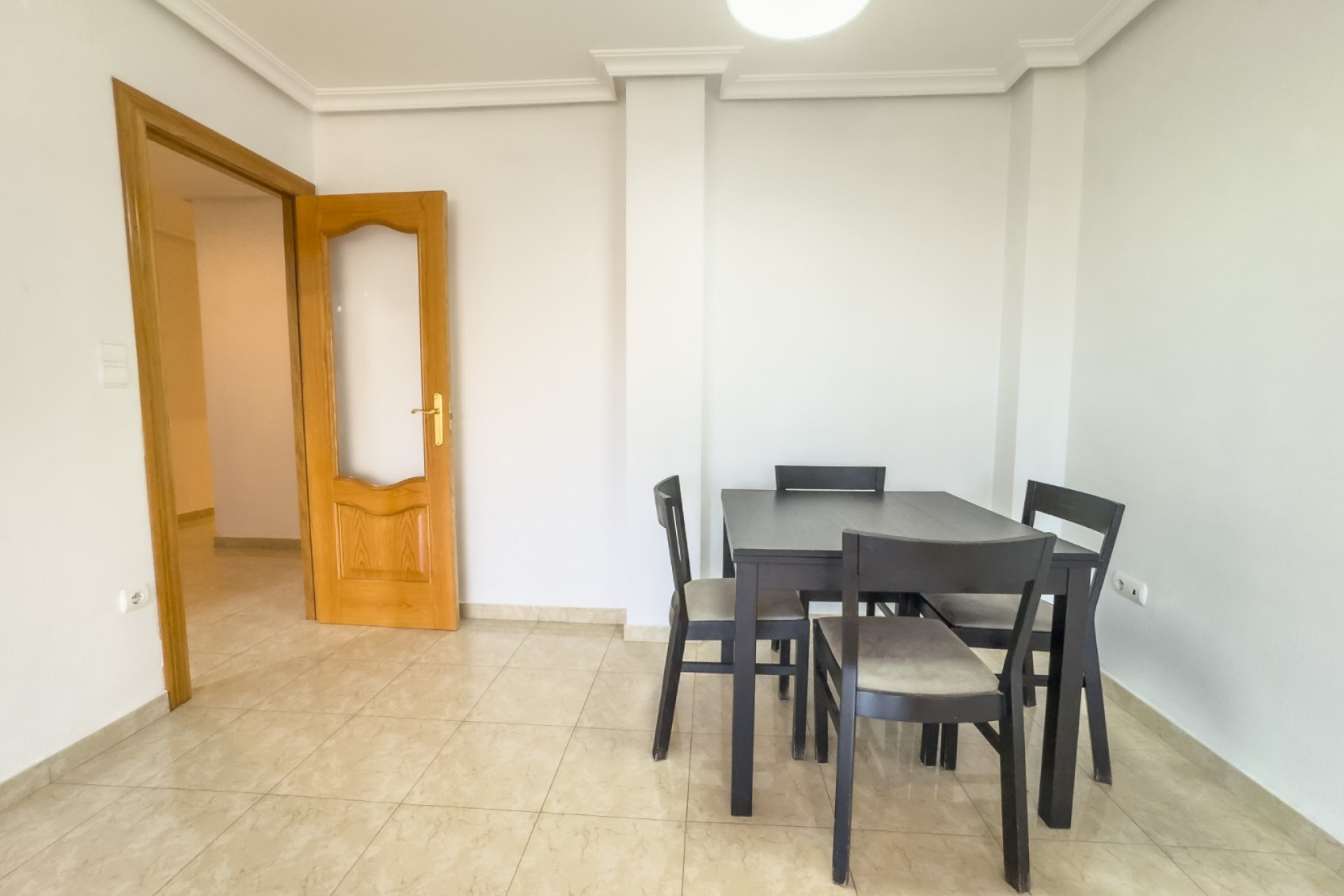 Amplio piso sin amueblar en la Plaza de Benidorm de Elche, cocina y galería equipada con todos los electrodomésticos, la finca cuenta con ascensor, amplias vistas desde el salon y galería-cocina, habitación principal con baño en suite, baño en pasillo, tres amplios armarios de obra en las tres habitaciones.