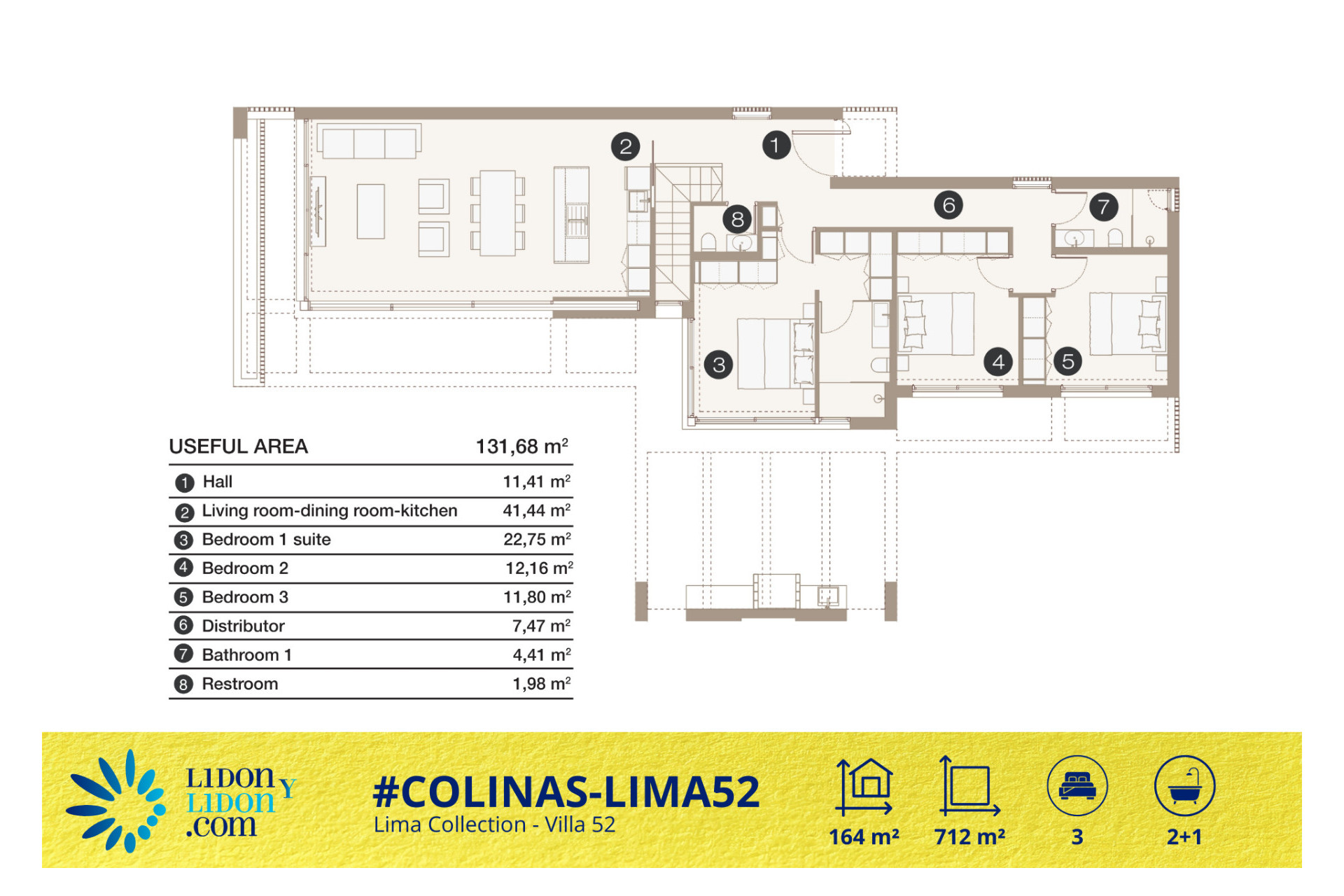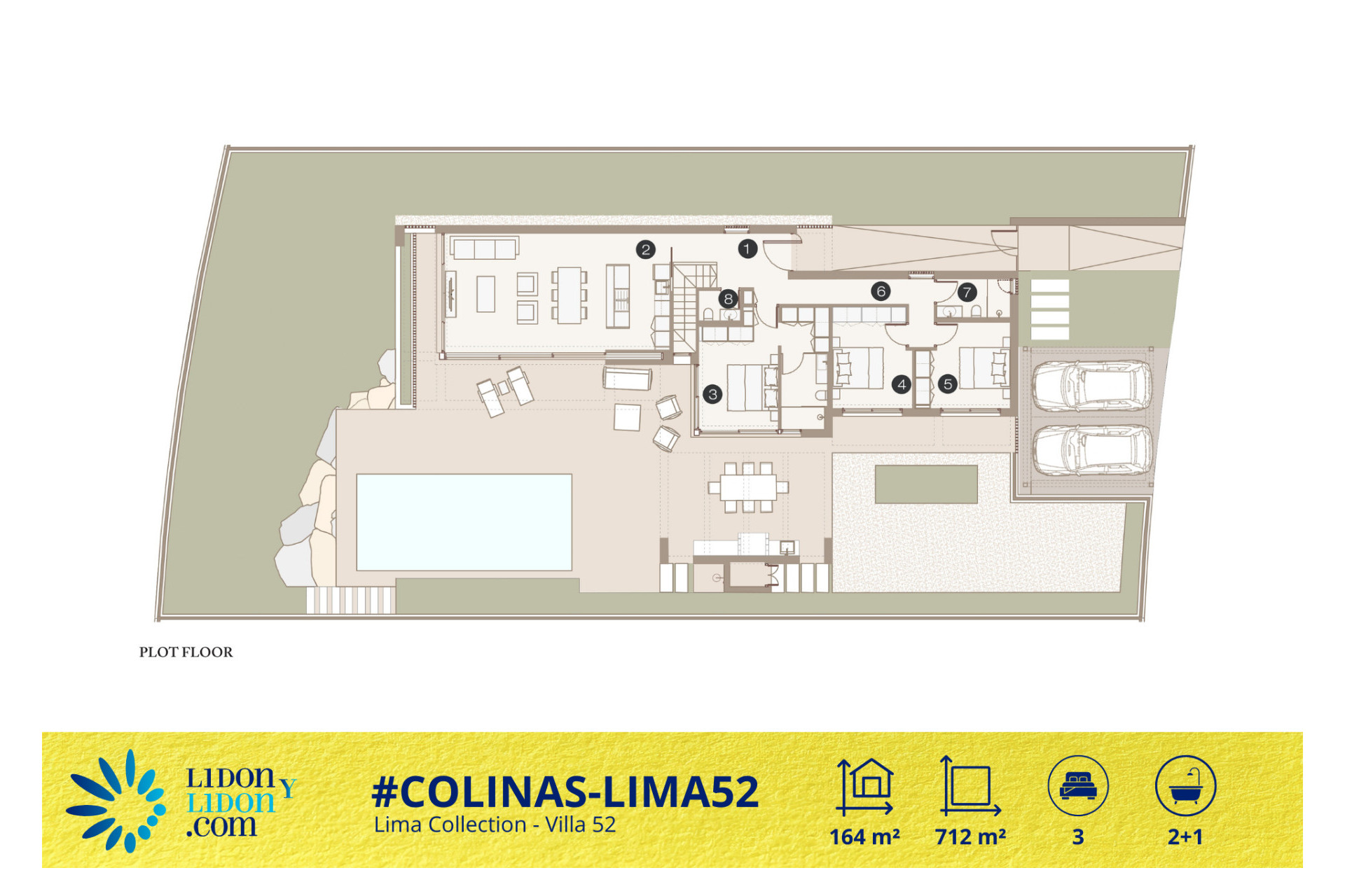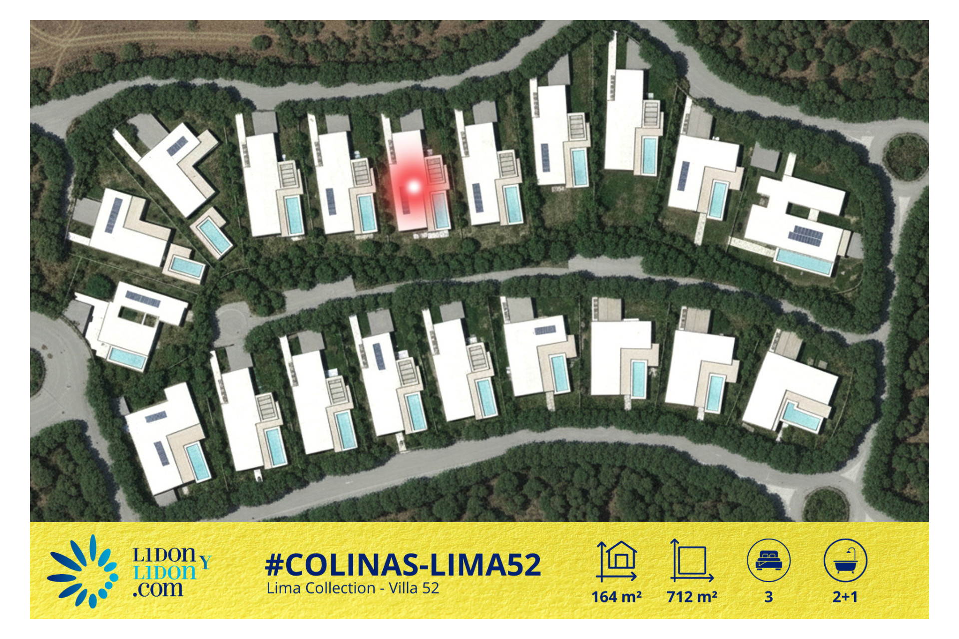 La Villa 52, correspondiente al Tipo 1 de la Lima Collection, ofrece una interpretación sobria y elegante de la villa contemporánea en una sola planta, diseñada para proporcionar un estilo de vida premium en el entorno privilegiado de Las Colinas Golf & Country Club. Ubicada sobre una parcela privada de 712 m², esta propiedad disfruta de una relación especialmente equilibrada entre arquitectura, zonas ajardinadas, terrazas y piscina privada, con una implantación que favorece la privacidad y al mismo tiempo realza el aprovechamiento de los espacios exteriores.