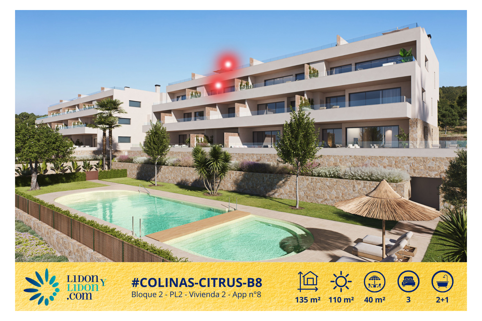 Ático de lujo de 3 dormitorios con gran terraza y solárium privado en Las Colinas Golf