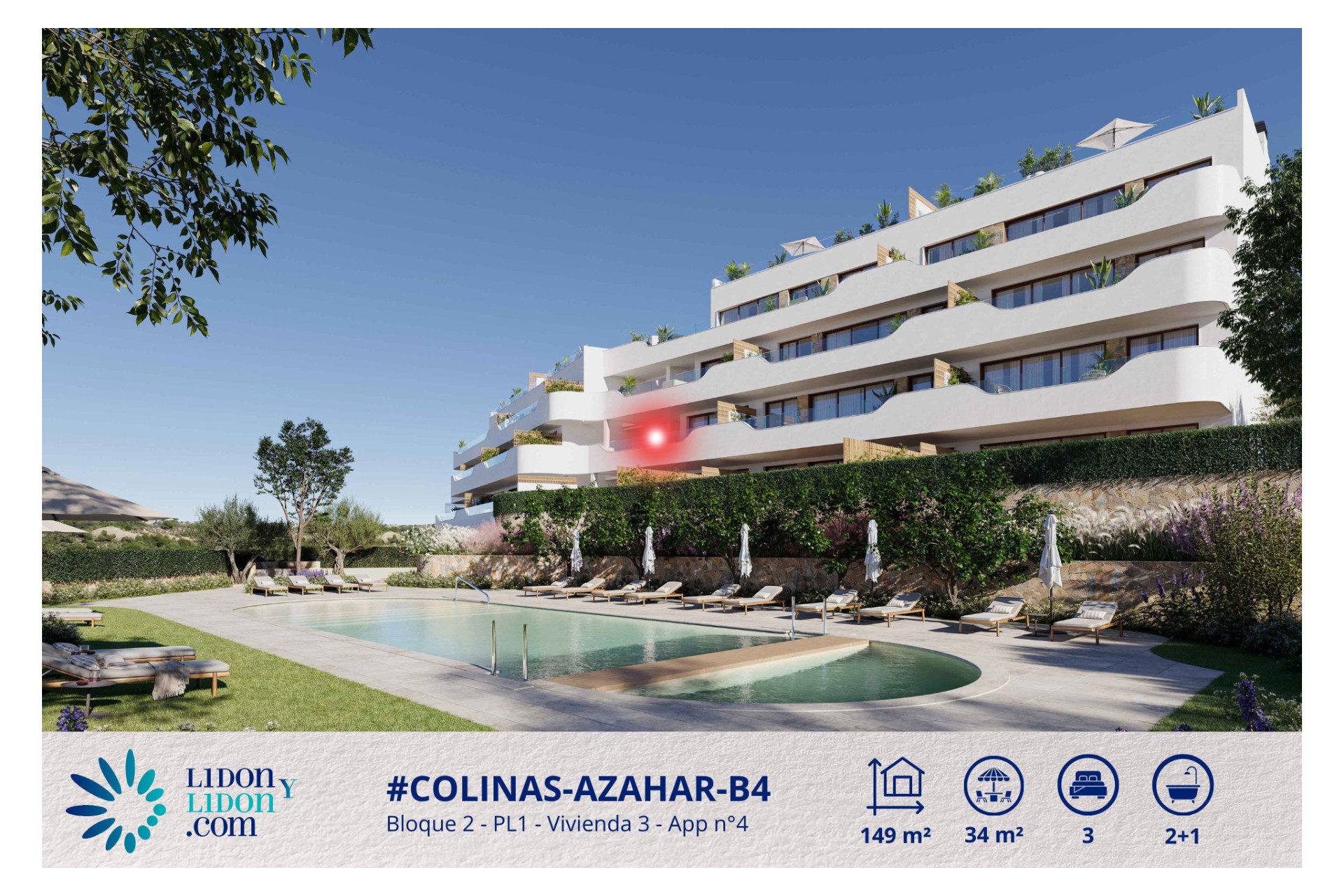 Desde su privilegiada posición en planta intermedia dentro del edificio, el apartamento mantiene una relación especialmente agradable con las zonas comunes y con la atmósfera premium de Azahar. La piscina y las zonas de descanso se encuentran a muy poca distancia, lo que incrementa notablemente el atractivo de la vivienda, tanto como residencia principal, como segunda residencia de alto nivel o como inversión patrimonial de calidad. Poder acceder rápidamente a la piscina, a los jardines paisajísticos y al ambiente sereno y cuidadosamente diseñado que caracteriza a Las Colinas supone una ventaja real en el día a día. Esta proximidad aporta un estilo de vida tipo resort muy seductor, manteniendo al mismo tiempo la privacidad y el confort de una vivienda privada perfectamente integrada en su entorno.