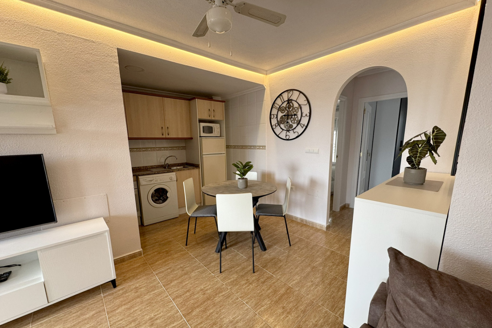 Situé à Los Palacios, Rojales, ce charmant appartement en rez-de-chaussée est proposé en location longue durée dans un environnement calme, résidentiel et particulièrement pratique au quotidien. Entièrement meublé et en très bon état, il constitue une excellente option pour celles et ceux qui recherchent un logement confortable, facile à vivre et bien connecté aux commodités de la zone.
