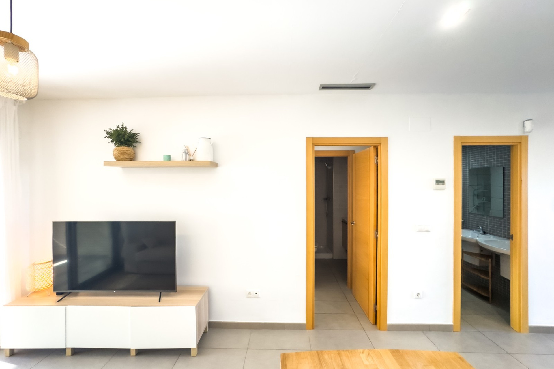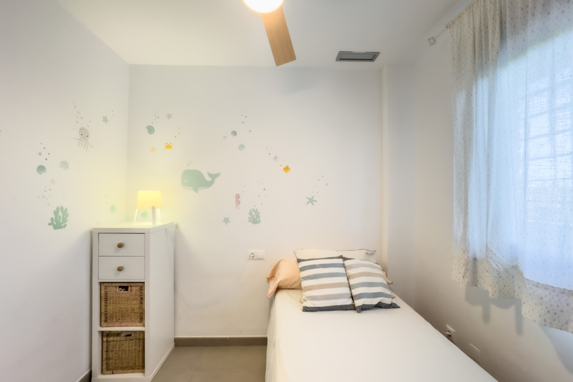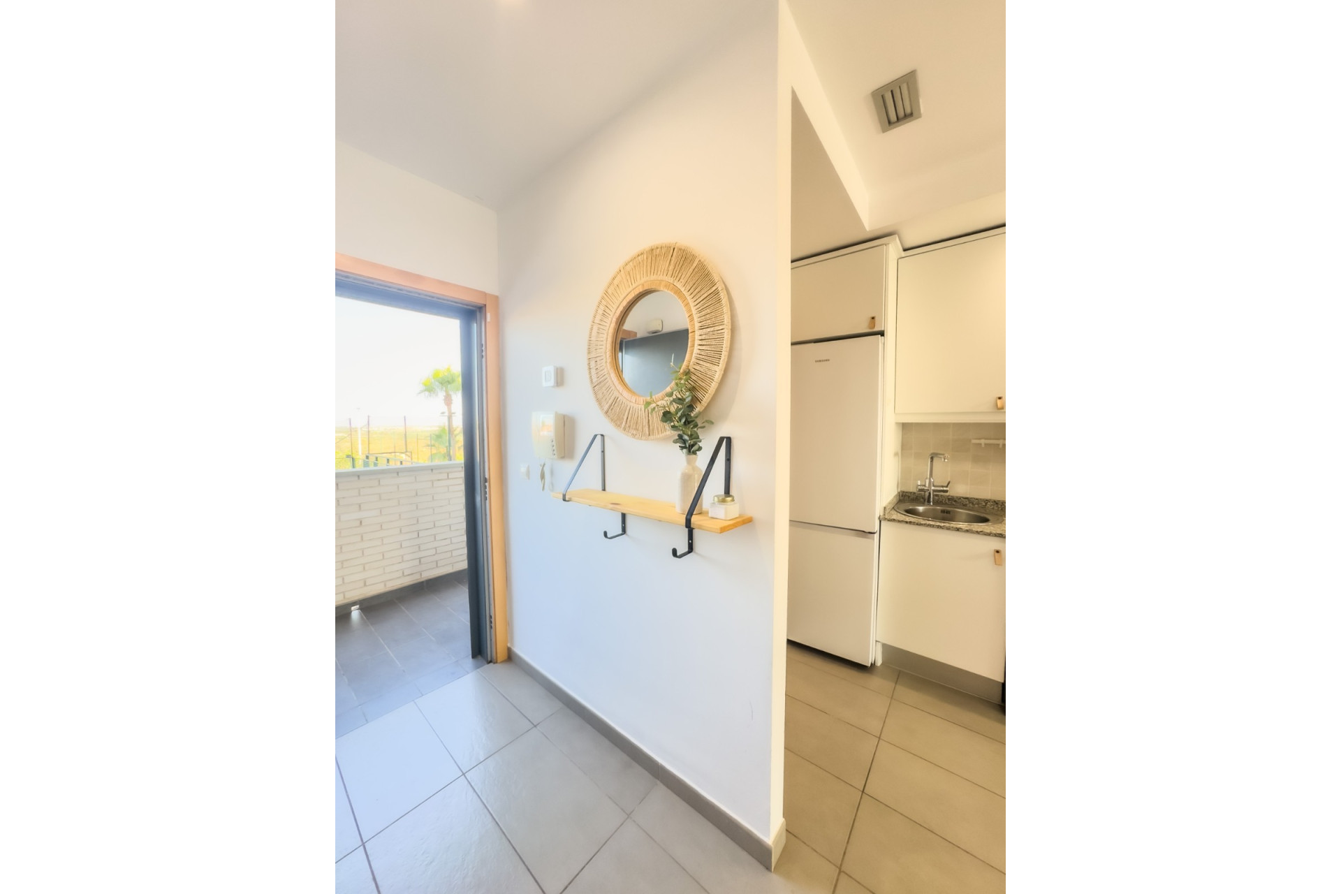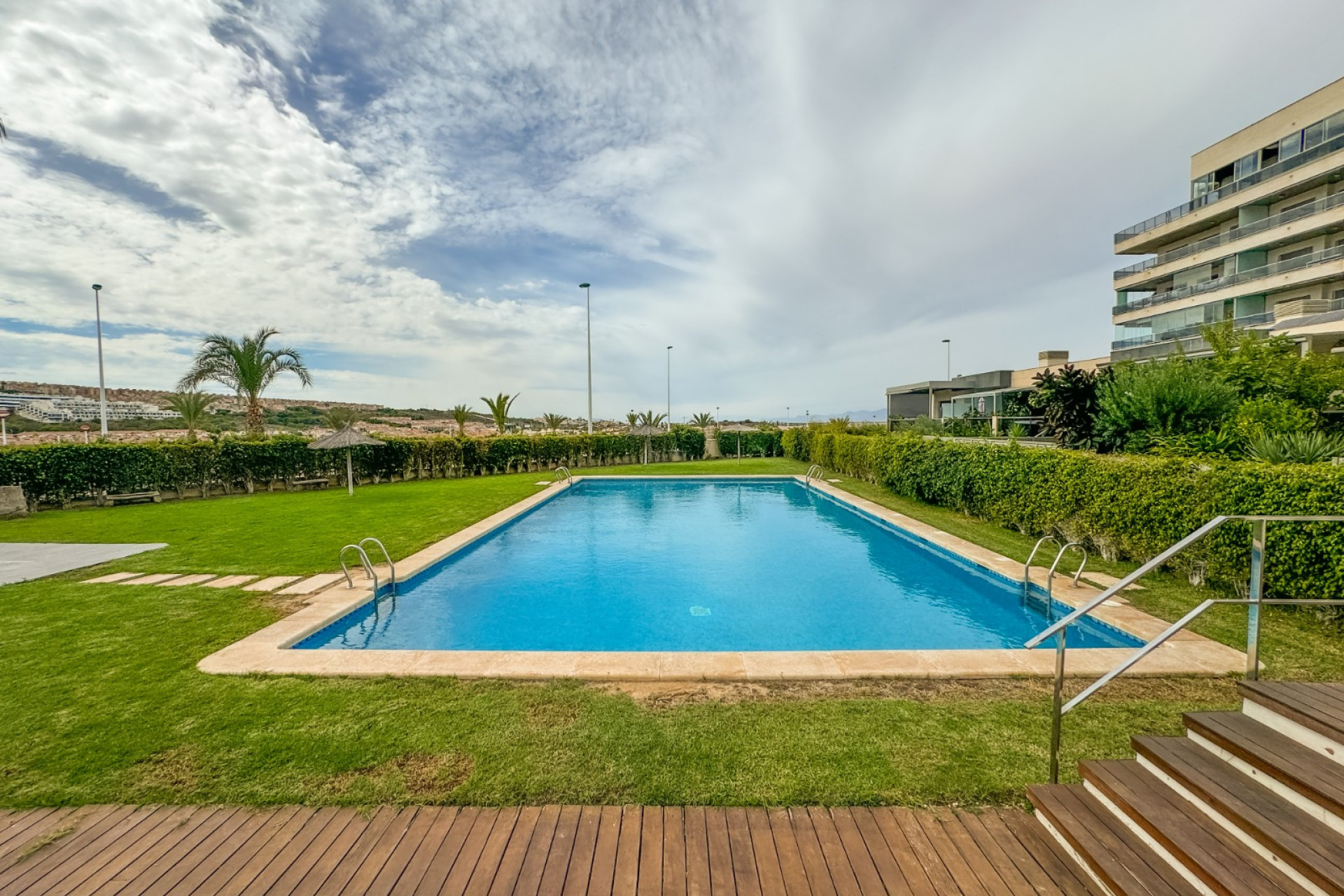 Cozy apartment, very good qualities, fully equipped kitchen with fridge, microwave, induction cooker, electric oven, extractor hood, dishwasher, air conditioning by ducts throughout the house, cold and heat pump, large fitted wardrobes, two bathrooms with shower. East orientation, closed urbanization with elevators, 4 communal swimming pools with landscaped areas, community changing rooms, sports area with padel and football courts.