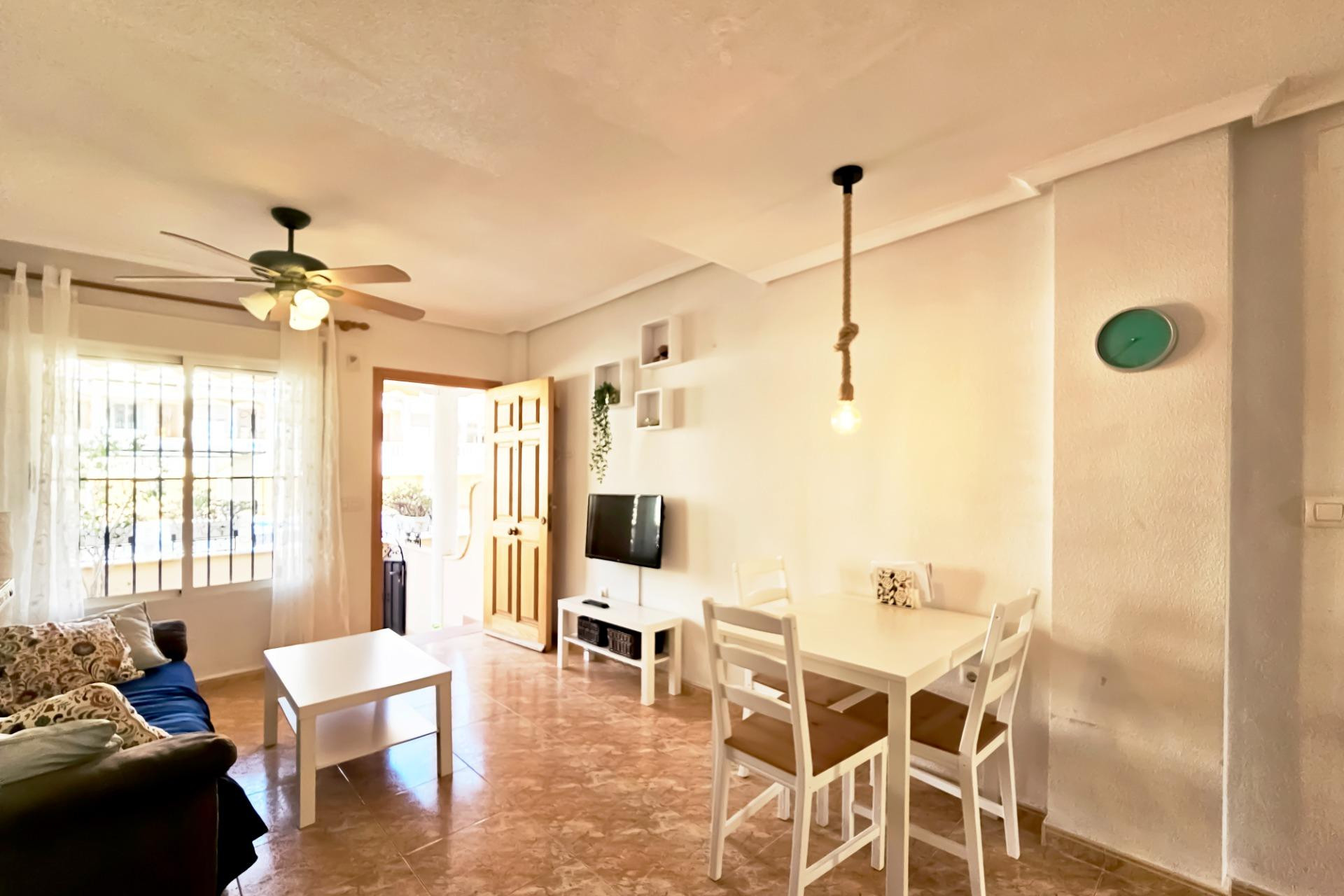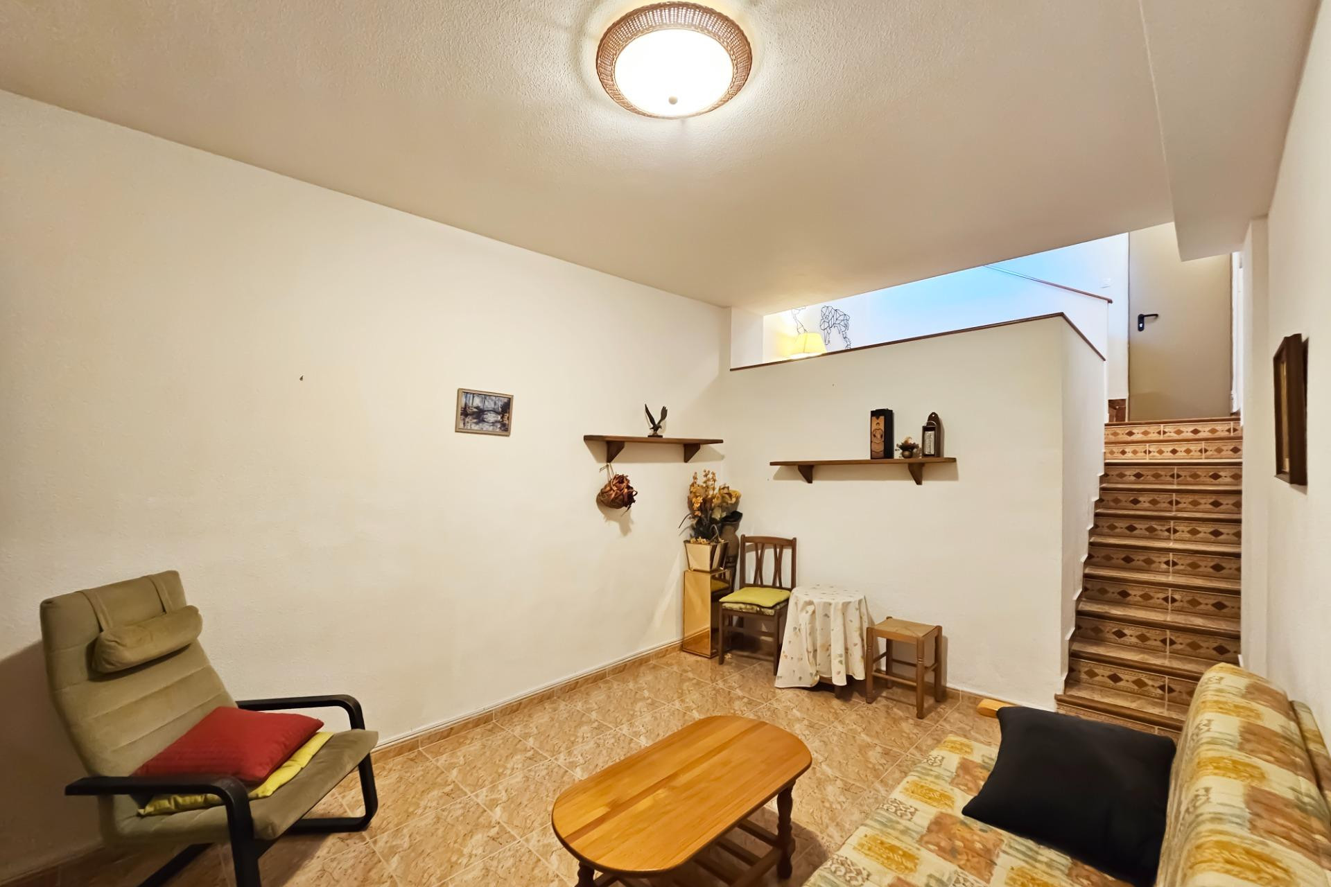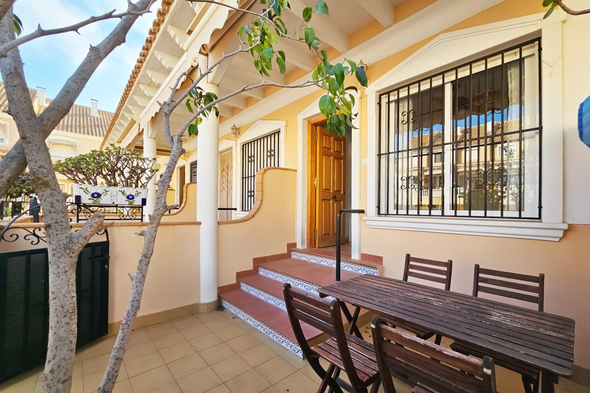 In the exclusive Santiago Bernabéu area of Santa Pola, just 200 metres from the beach, stands this spacious bungalow of 135 m², located within a private residential community with a swimming pool. Its position, next to the communal area and within walking distance to shops, restaurants and the seafront promenade, makes it one of the most desirable properties in the area.~~The home is distributed over five levels, offering comfort and versatility for both year-round living and holidays. On the main floor, there are pleasant front and rear patios, ideal for outdoor dining or relaxing with family and friends. The interior features a bright living-dining room, a fully equipped kitchen, and two bathrooms that serve the three bedrooms. On the top floor, a sunny terrace provides a private space to enjoy the Mediterranean climate and open views.~~This property also includes a private garage with direct access to the home, air conditioning, and the possibility to purchase it fully furnished, ready to move into. The urbanization offers a quiet and secure environment, next to the pool and surrounded by all necessary services. It’s an excellent opportunity both as a permanent residence and as an investment in the Costa Blanca real estate market.