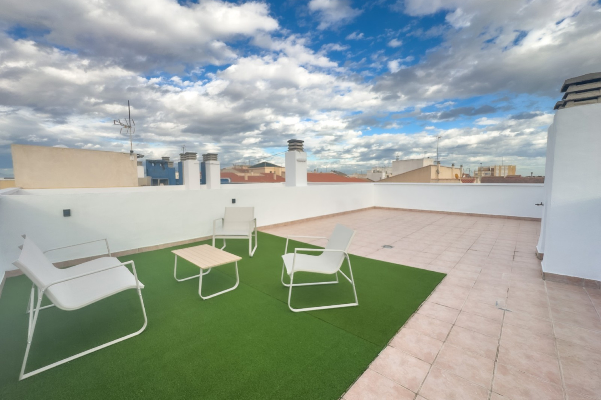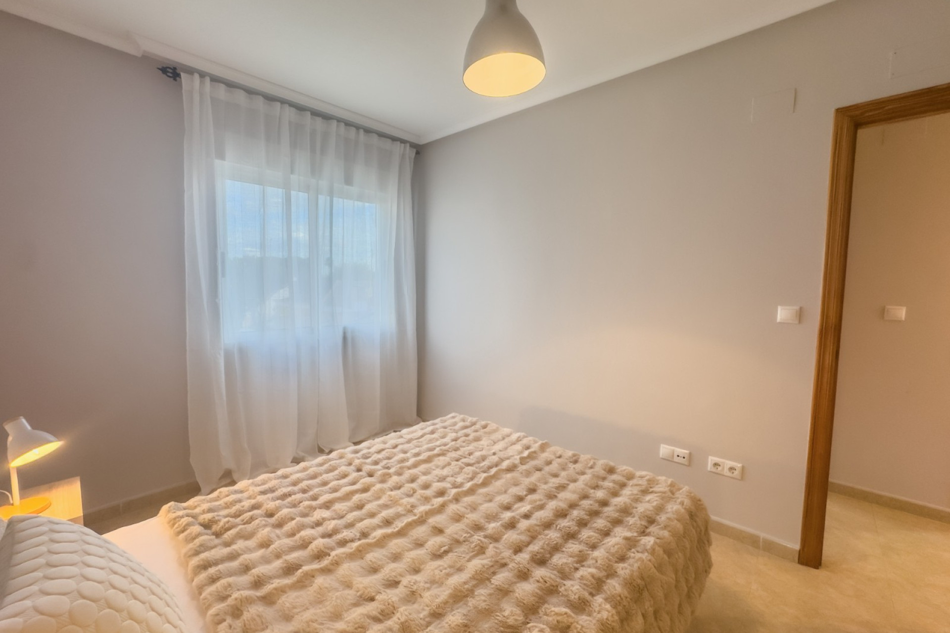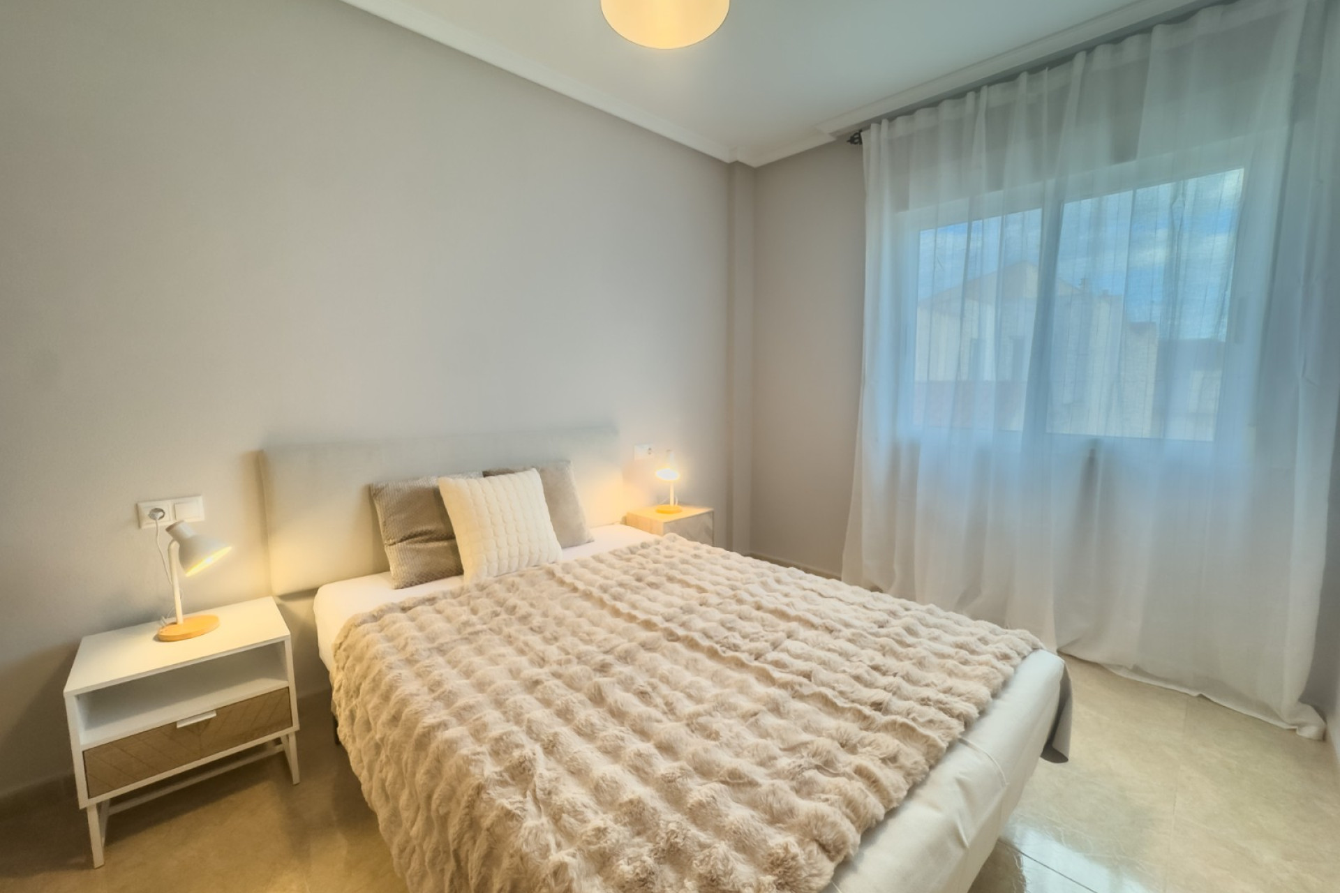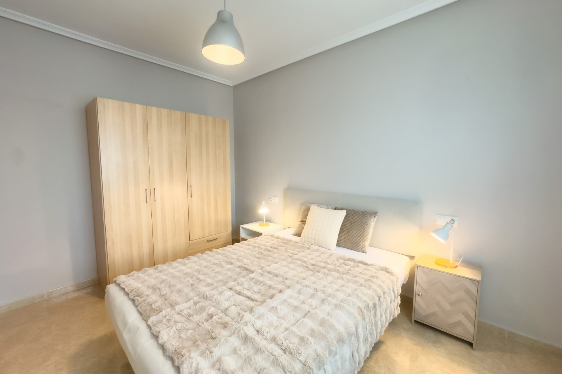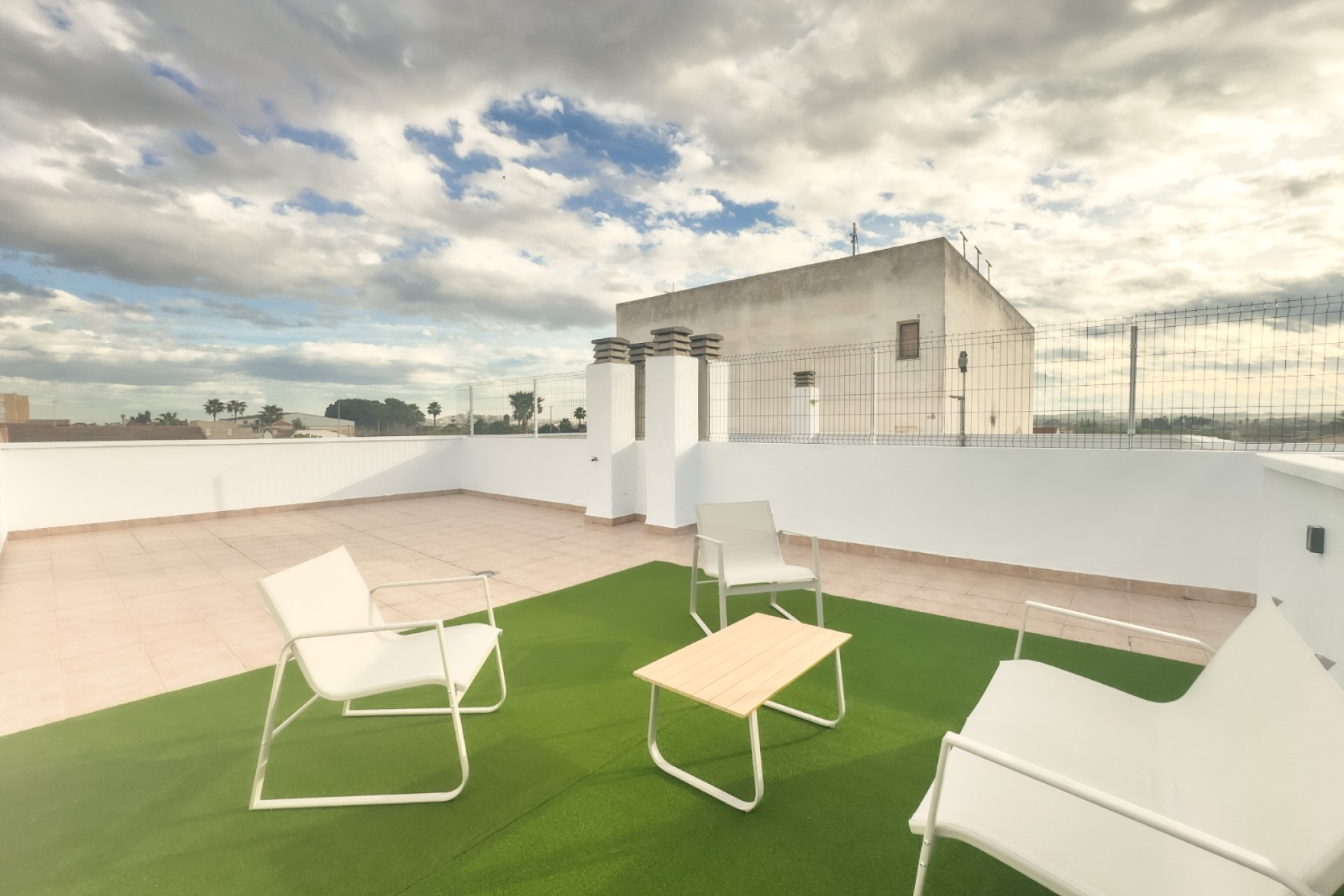 Spacious furnished new apartment in Daya Nueva for annual rent, two large bedrooms, a bathroom, kitchen equipped with all electrical appliances, large terrace and solarium of 70m2 .