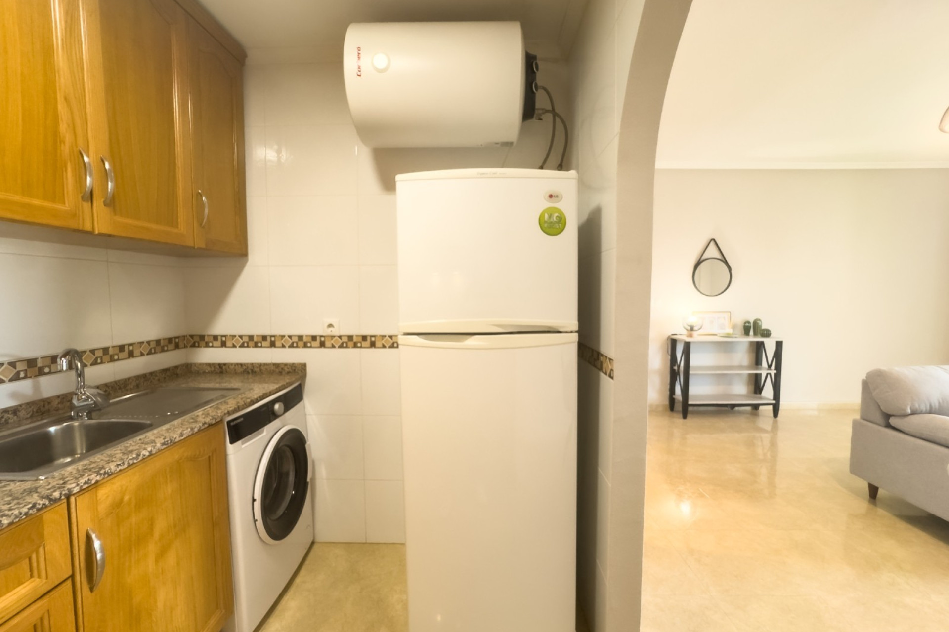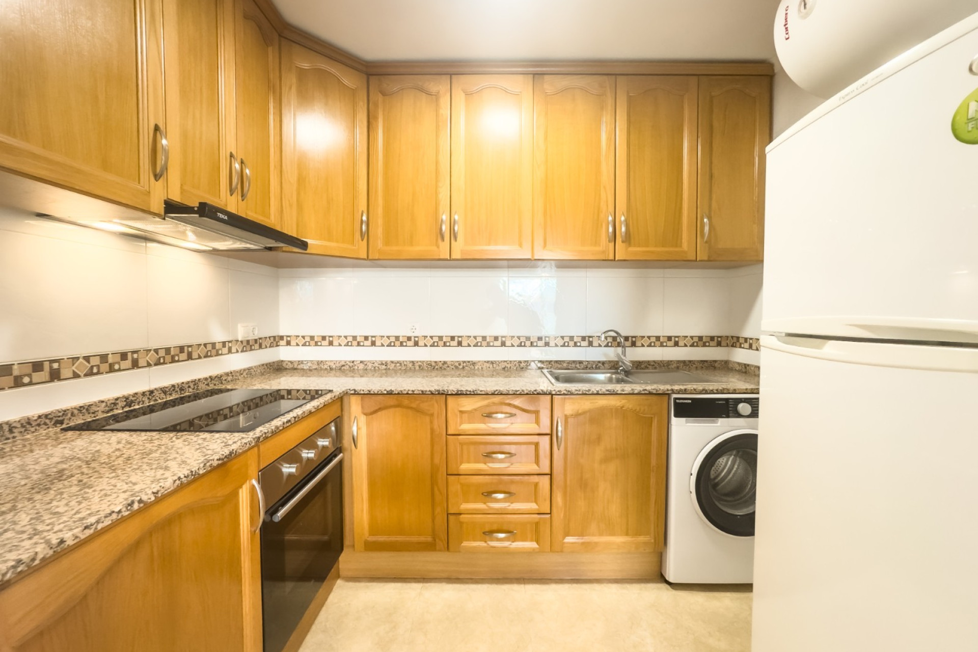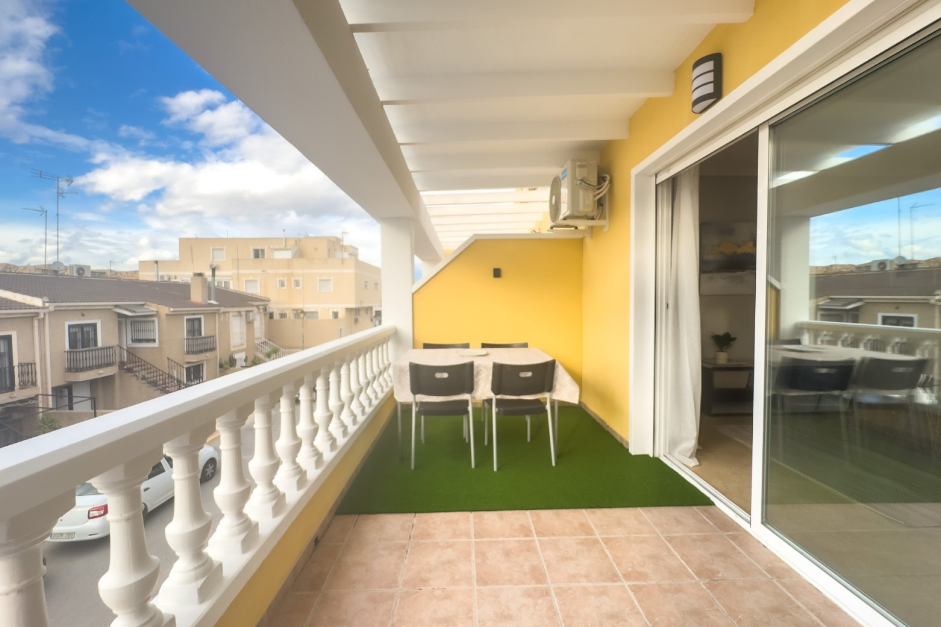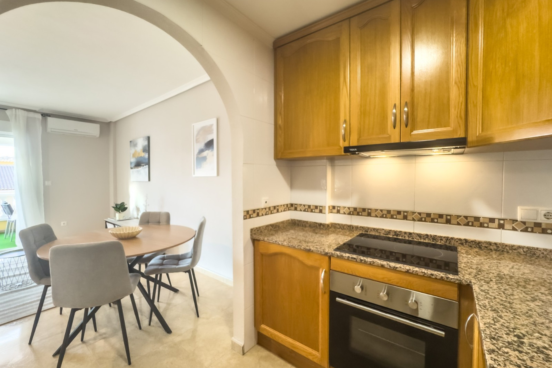 Spacious furnished new apartment in Daya Nueva for annual rent, two large bedrooms, a bathroom, kitchen equipped with all electrical appliances, large terrace and solarium of 70m2 .