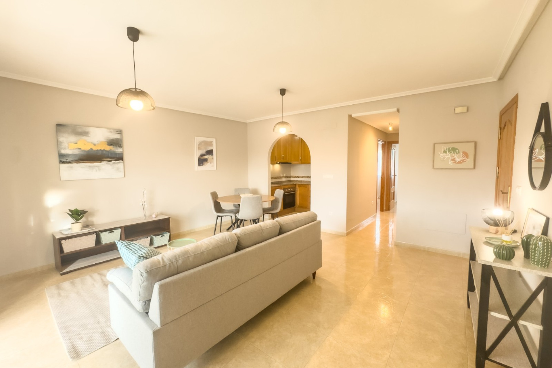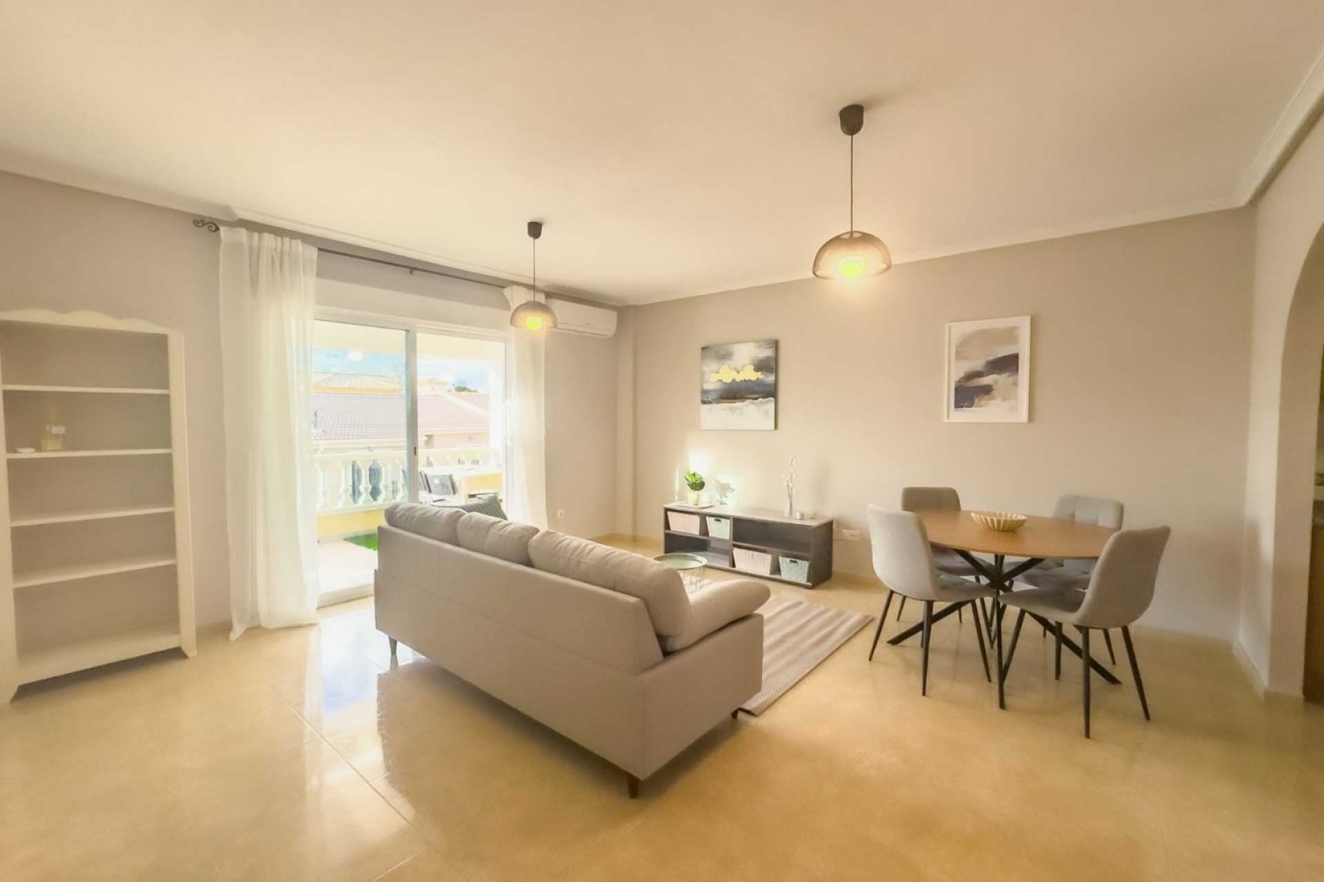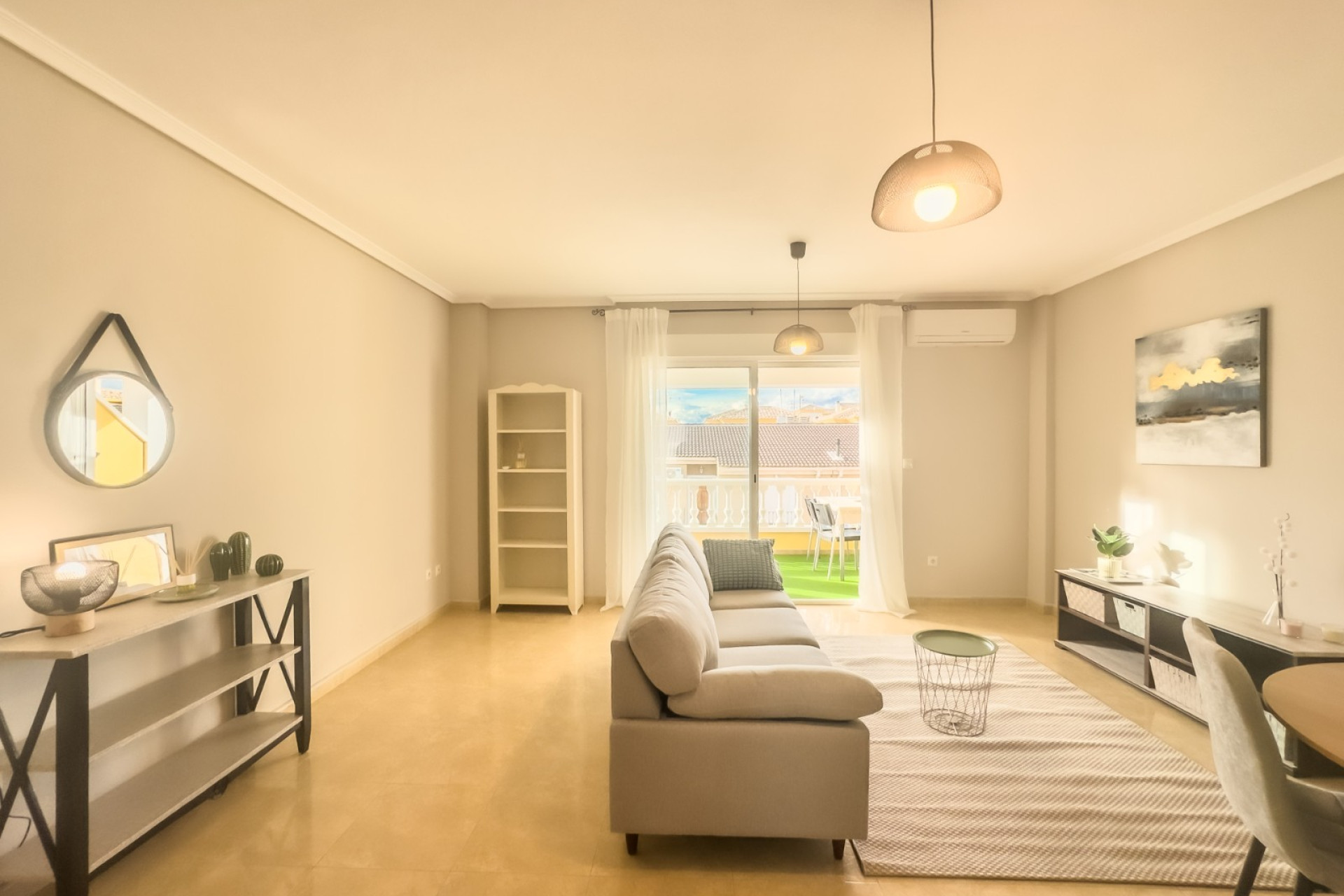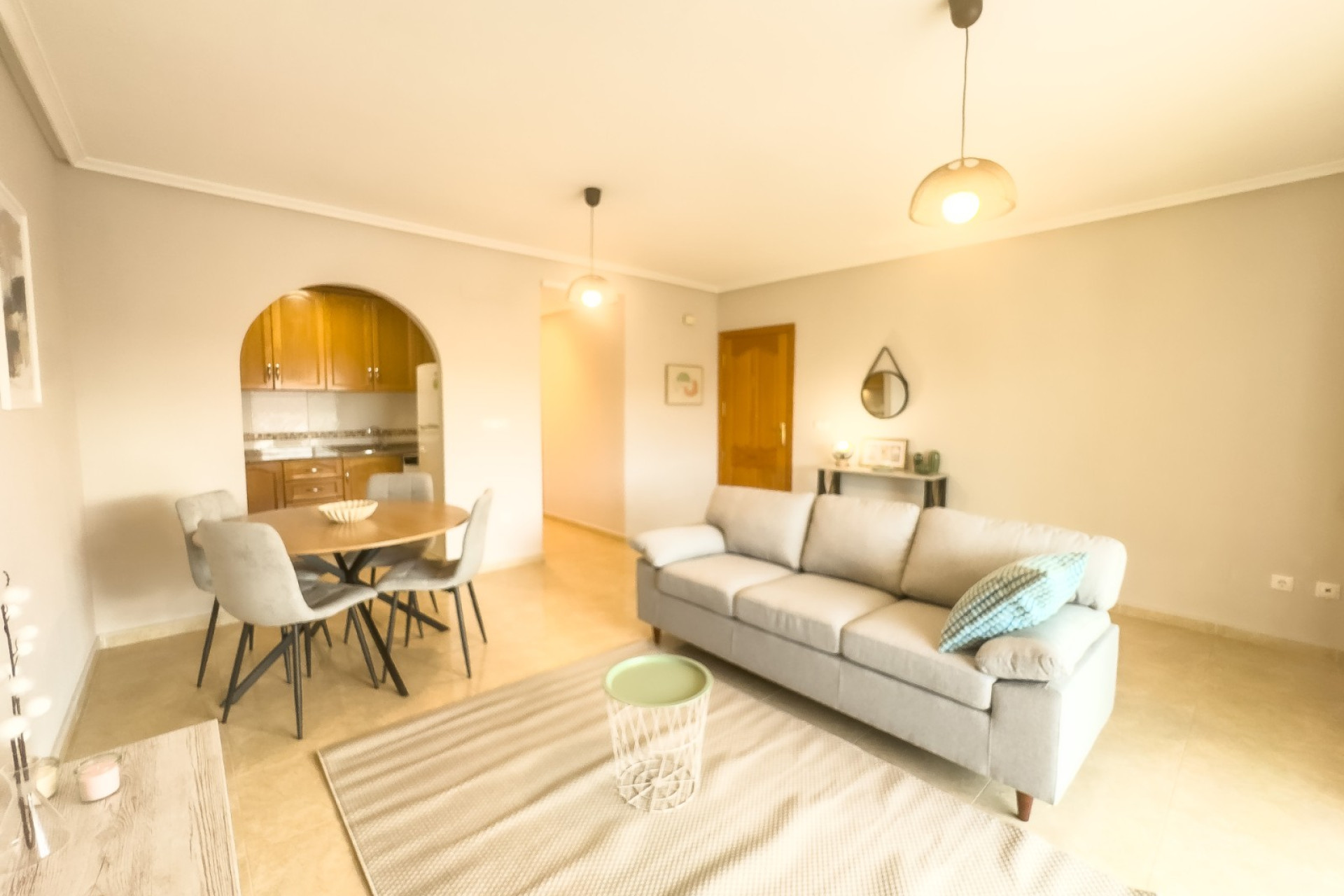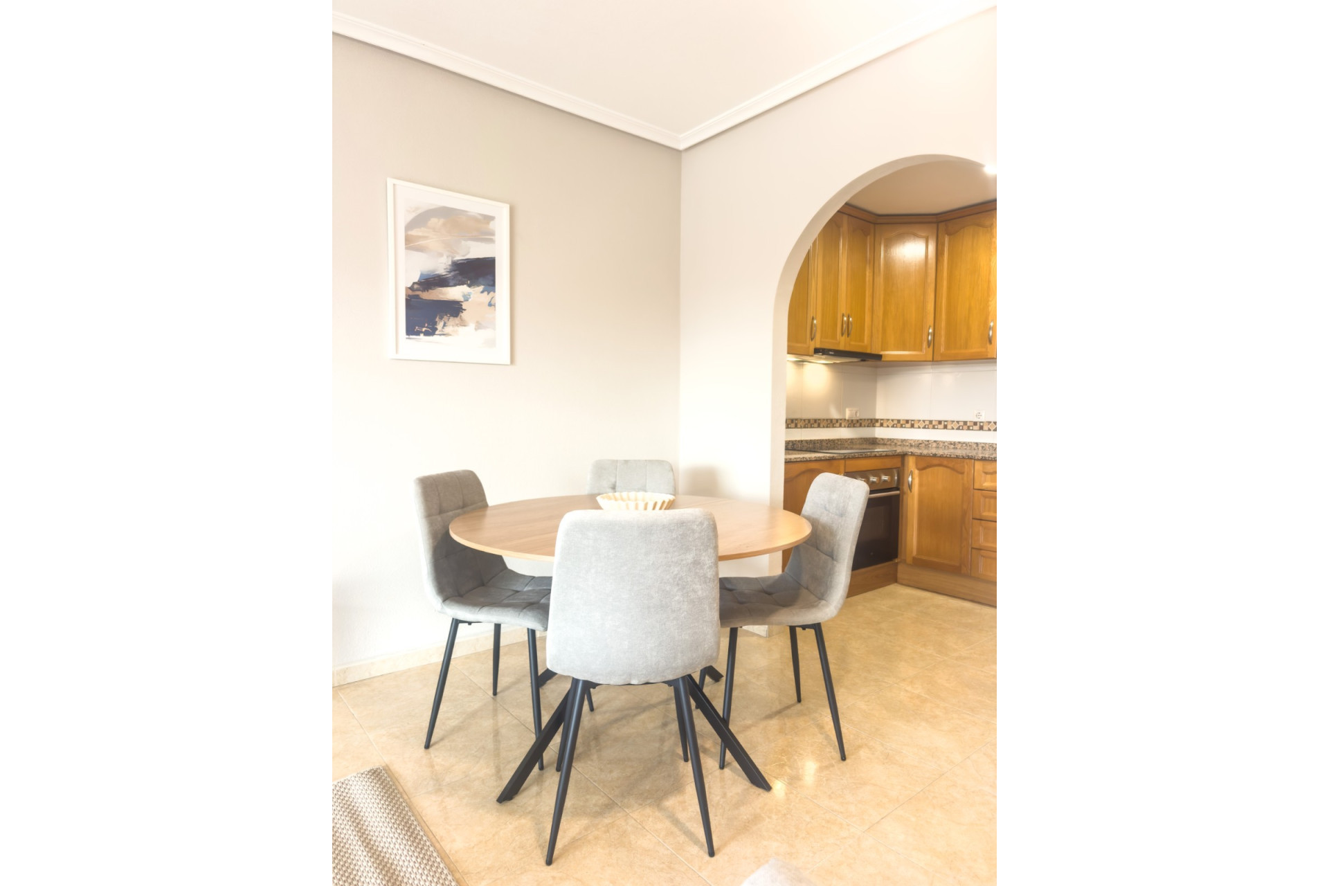 Spacious furnished new apartment in Daya Nueva for annual rent, two large bedrooms, a bathroom, kitchen equipped with all electrical appliances, large terrace and solarium of 70m2 .
