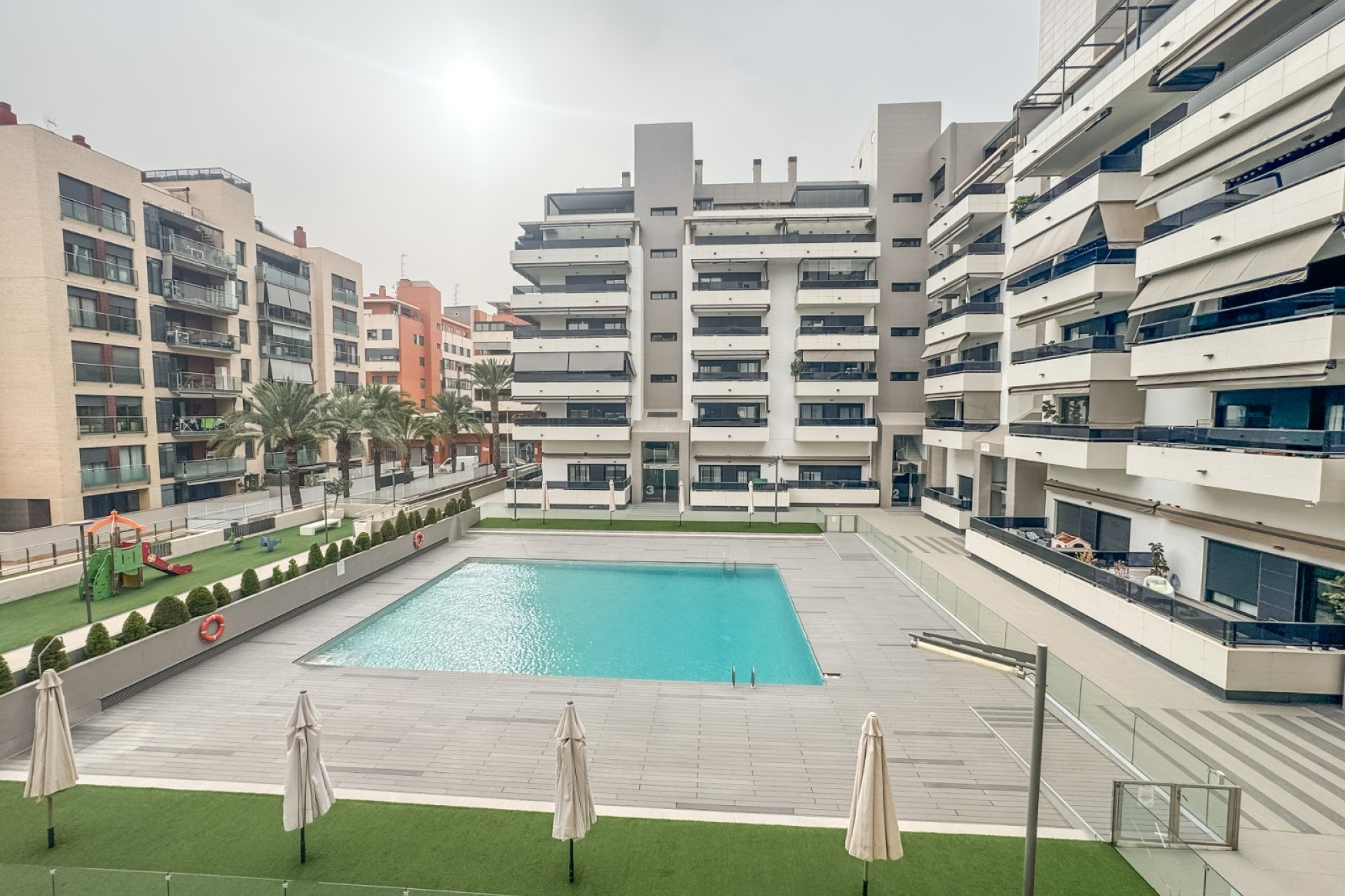 Spectacular apartment for rent with 3 bedrooms, 2 bathrooms, 2 garage places in urbanization with pool, gym, sauna, children’s area, etc.